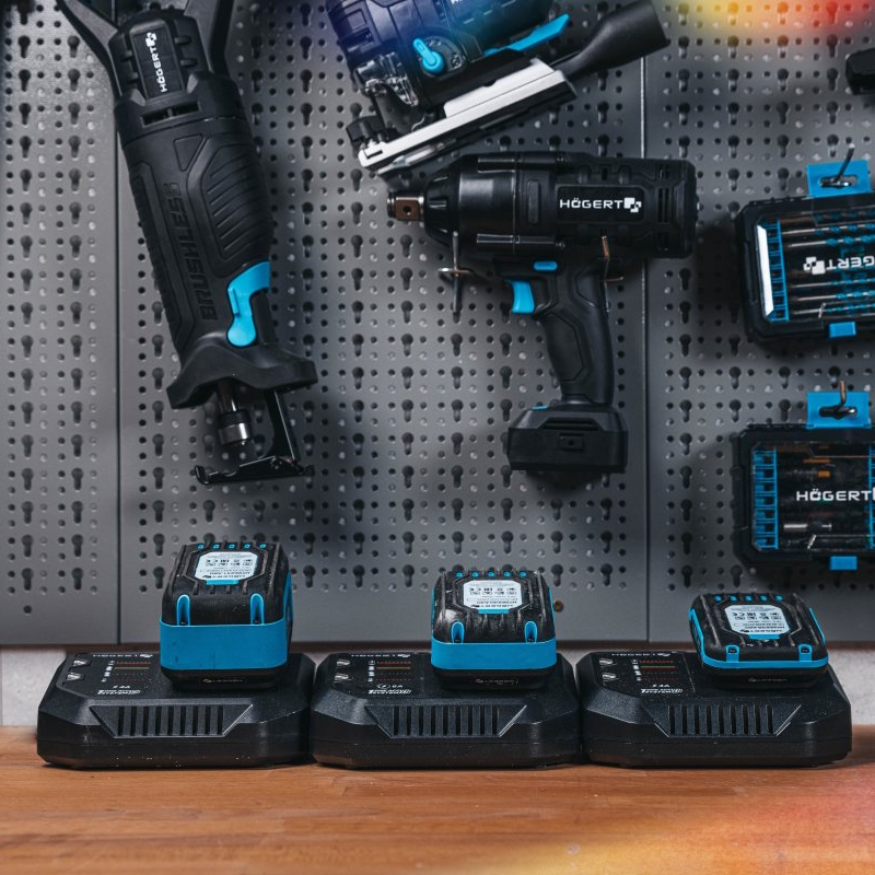 ХарактеристикиНапряжение – 18 В.Сила тока – 4 А.Вес – 0.56 кг.Защита – от перегрева, перезарядки, короткого замыкания.Индикатор процесса зарядки.Время зарядки 80 % аккумулятора 2 А·ч – 30 мин.Время зарядки 80 % аккумулятора 4 А·ч – 60 мин.Время зарядки 80 % аккумулятора 6 А·ч – 90 мин.
