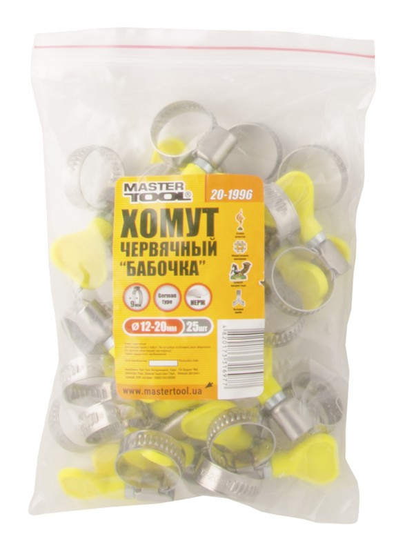 Хомут червячный нерж. MASTERTOOL Бабочка 12-20 мм 25 шт 20-1996 код товару 20-1996 Master Tool, Mastertool