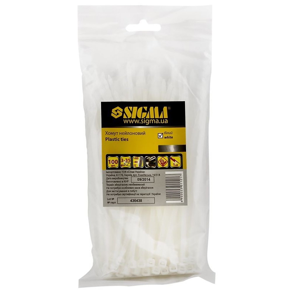 Характеристики Хомут нейлоновый 4.8×300мм 50шт белый SIGMA (2501251) код товару 2501251