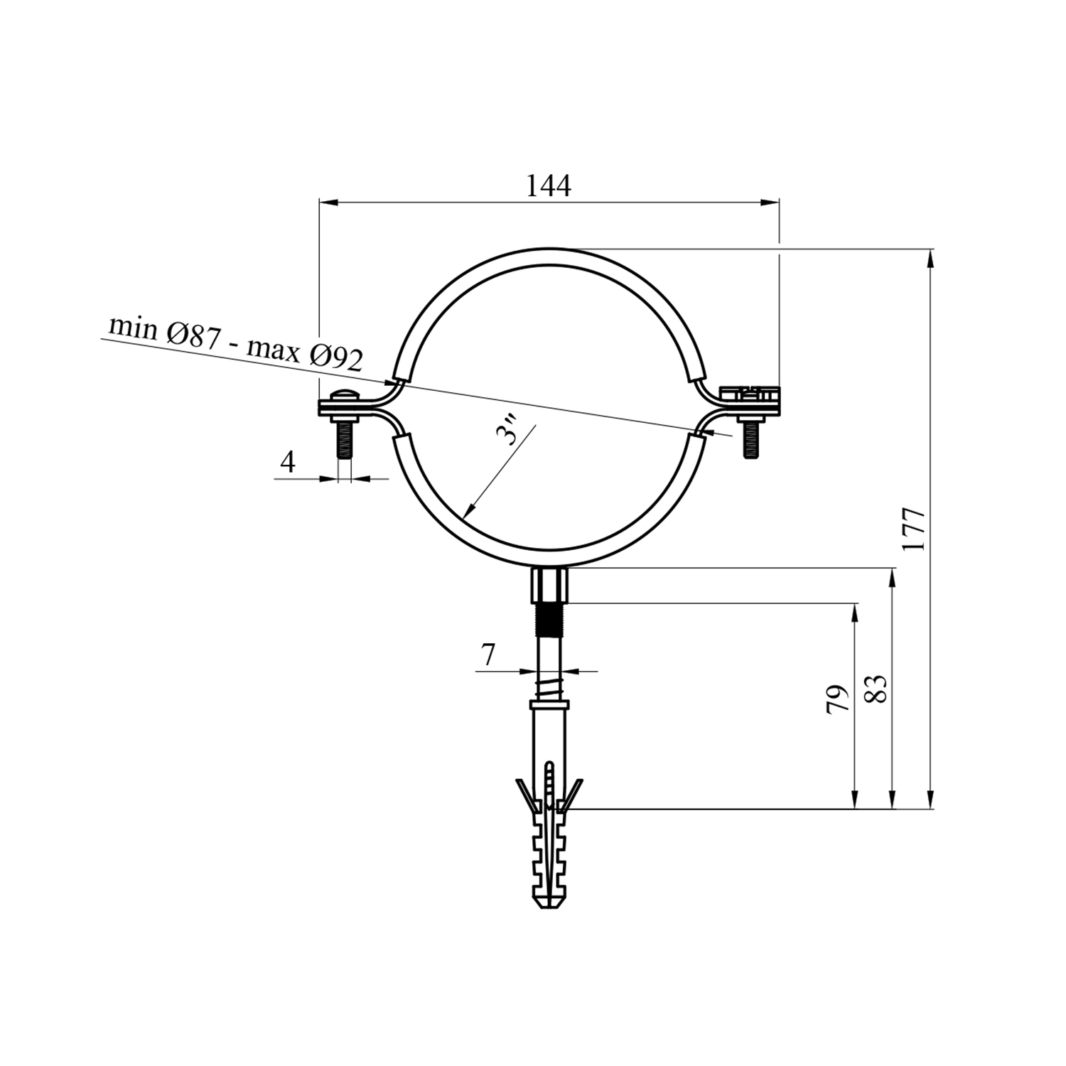 Характеристики Хомут со шпилькой Karro 3 87-92 мм металлический код товару CV019264