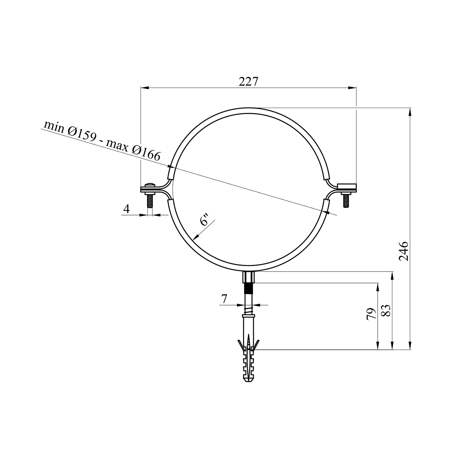 - Диаметр рабочего диапазона 159-166 мм.