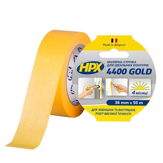 Характеристики HPX 4400 “Золотая” - 36мм x 50м - малярная лента для наружных работ код товару FP3850