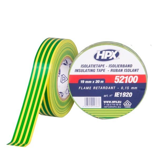 Описание HPX 52100 - 19мм x 20м, желто-зеленая, VDE - изоляционная лента код товару IE1920