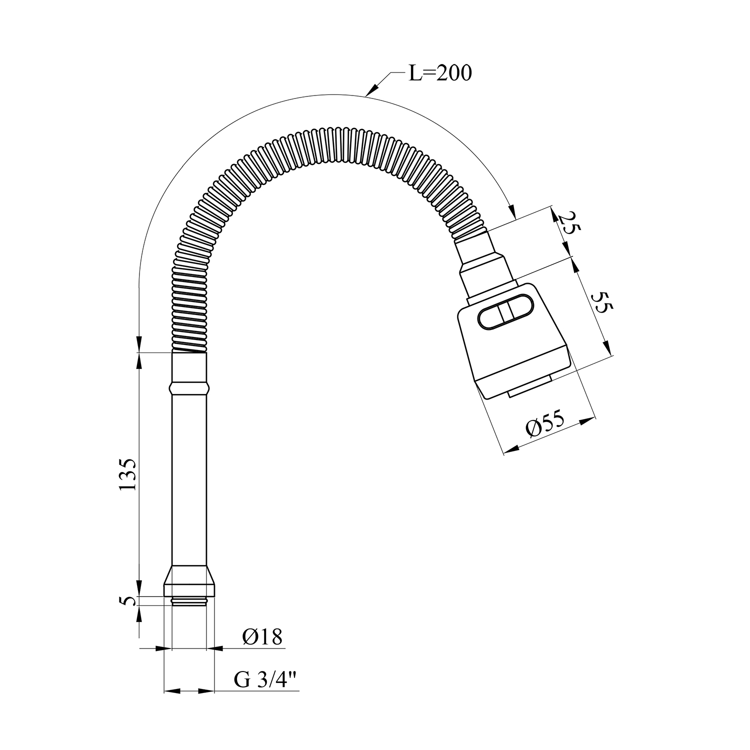 Характеристики Гибкий излив для смесителя Kroner KRM - C801, 2 режима код товару CV008582