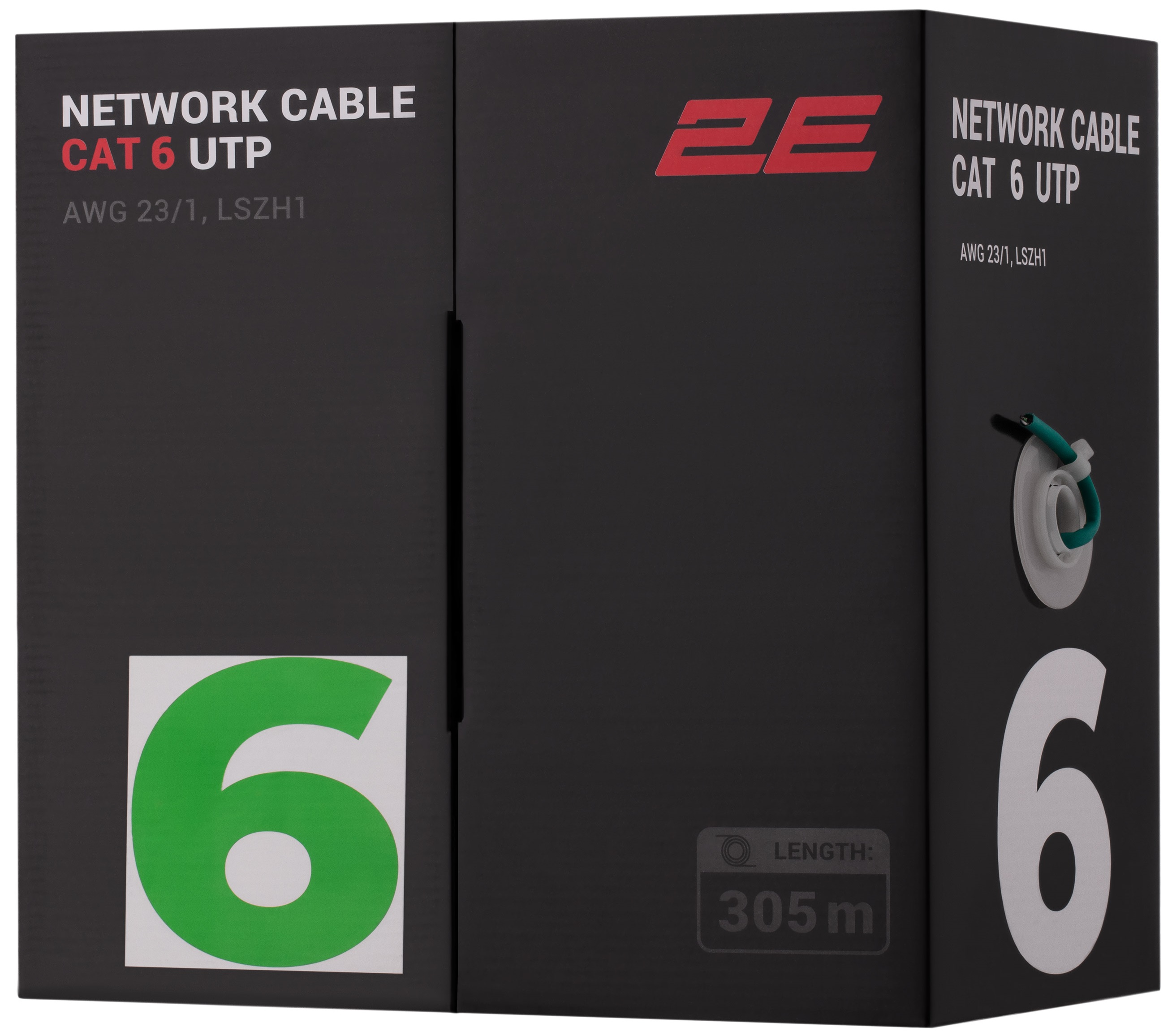Описание Кабель "вита пара" 2E CAT 6, U-UTP, 305м, AWG 23/1, LSZH-1, зелений код товару 2E-CBL6EUTP-LSZH1-GRN