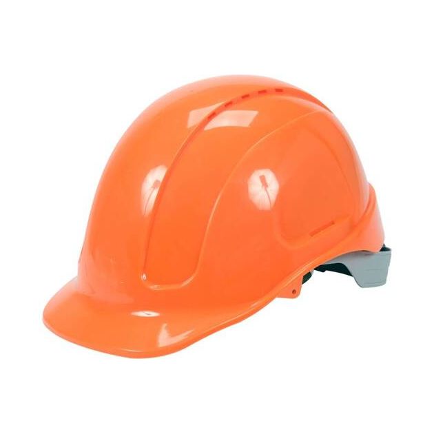 Яркая, как закат, оранжевая каска. ABS-пластик. Легкая, но прочная. Защита? Да, на высшем уровне.