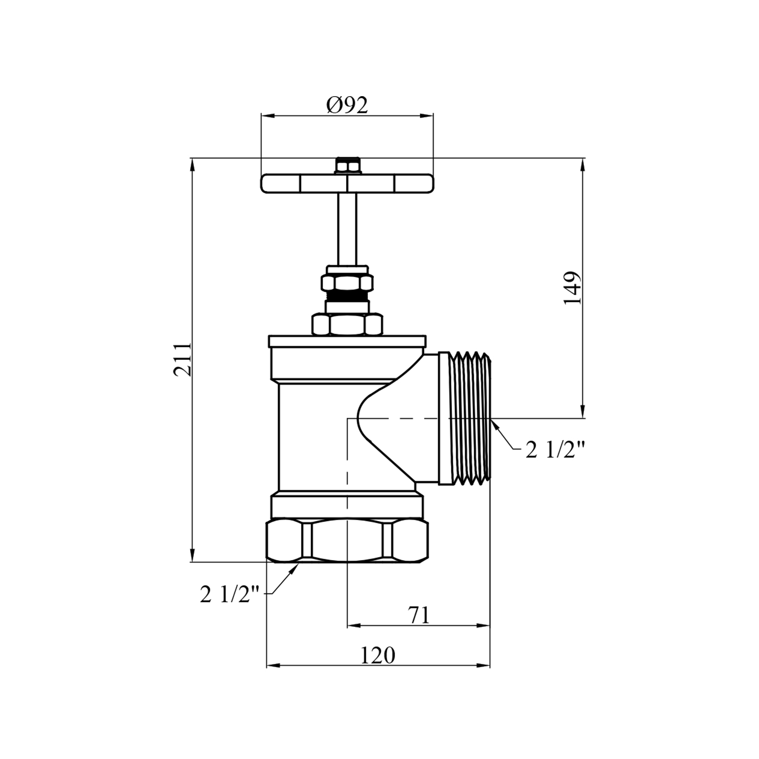 Характеристики Клапан муфтовый угловой LexLine DN65 PN16 ВН УК1129-В латунь код товару CV031678