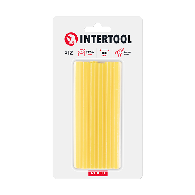 Характеристики Комплект желтых клеевых стержней INTERTOOL RT-1050, 7.4мм, 12шт. код товару RT-1050