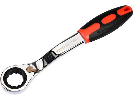 Описание Ключ накидний вигнутий YATO M22 з тріщаткою, прогумована ручка код товару YT-02384