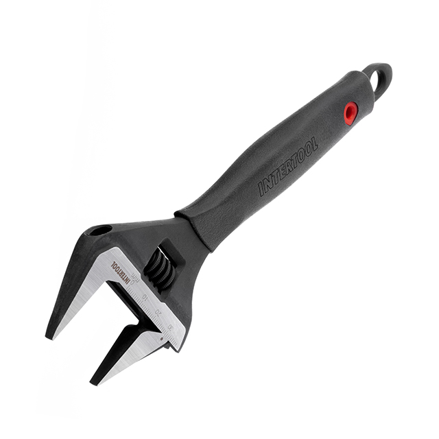 Описание Ключ разводной 200 мм, обрезиненная рукоятка, Cr-V INTERTOOL XT-0045 код товару XT-0045