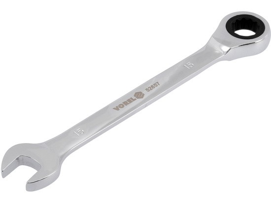 Описание Ключ ріжково-накидний з тріщаткою VOREL Cr-V, М 15 мм код товару 52657