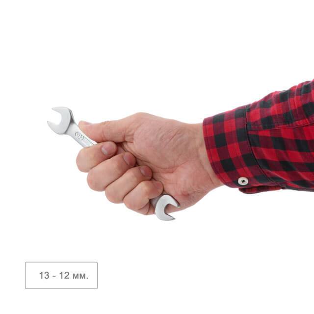 Ключ рожковый, 12-13 мм, Cr-V. Сатин-хром, блестит, но не слепит. DIN3110, как у профессионалов. STORM INTERTOOL, надежно, как крепость. Легкий, но прочный. В руках лежит, как будто создан для вас. Работает с гайками, которые не поддаются. Затягивает, откручивает, не оставляет шансов. Удобен в использовании, не скользит. Для дома, гаража, работы. Не подведет в трудную минуту. С ним вы — мастер. Не упустите шанс, добавьте в свой арсенал. Качество, проверенное временем. Удобство и стиль в одном инструменте.
