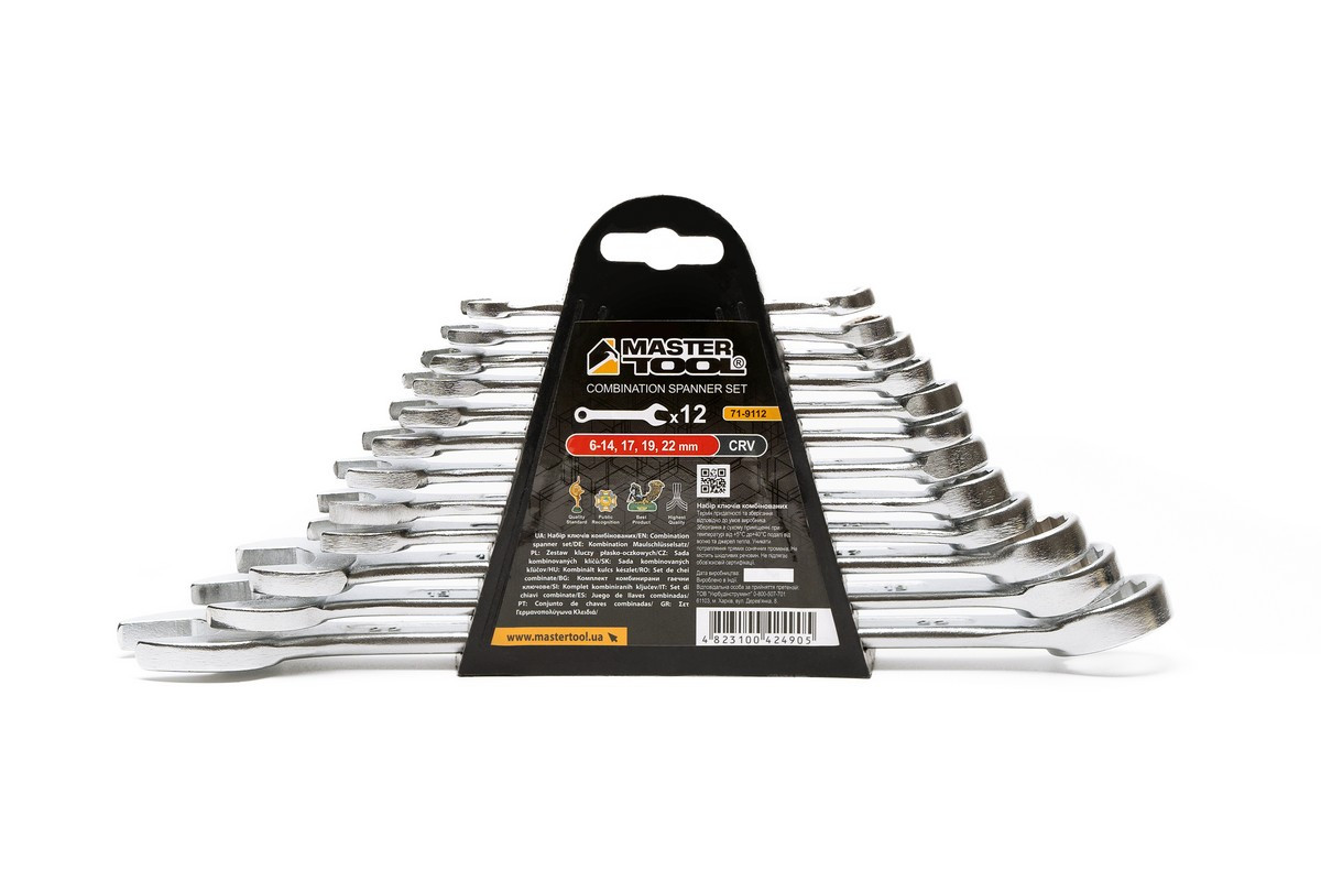 Ключи комбинированные MASTERTOOL MATT FINISH набор 12 шт (6/7/8/9/10/11/12/13/14/17/19/22 мм) CrV standard код товару 71-9112 Master Tool, Mastertool