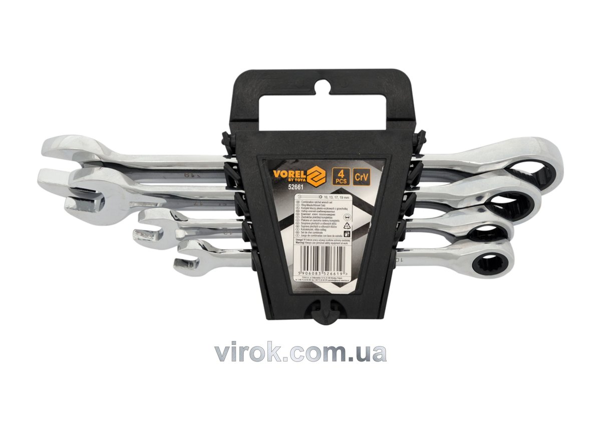 Ключи VOREL - это не просто инструмент, это ваша находка. Они готовы к работе в любых условиях. С трещоткой, которая не подведет. Четыре размера, чтобы охватить все задачи. Хром-ванадиевая сталь - прочность и долговечность. Удобство в каждой детали. Не упустите шанс сделать свою работу легче и быстрее. Ваша мастерская ждет!