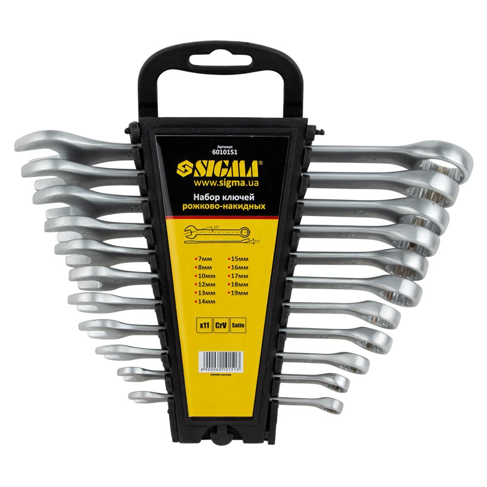 Характеристики Ключи рожково-накидные 11 шт 7-19 мм CrV сатин SIGMA код товару 6825