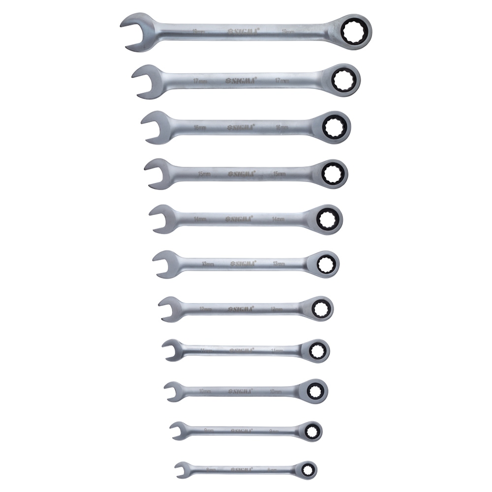 Ключи рожково-накидные трещоточные 11шт 8-19мм CrV SIGMA 6010531