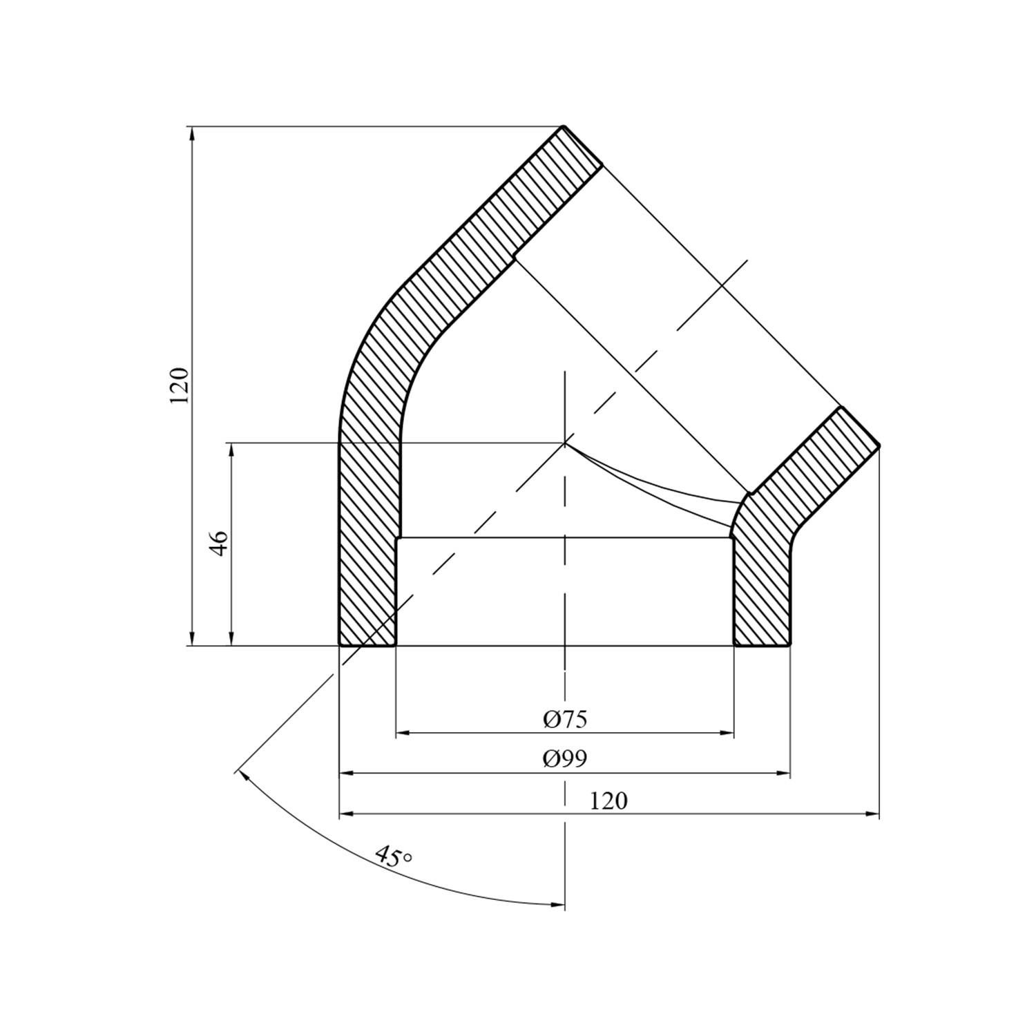 Описание Колено 45° PPR GrandiTherm 75 мм код товару CV024006
