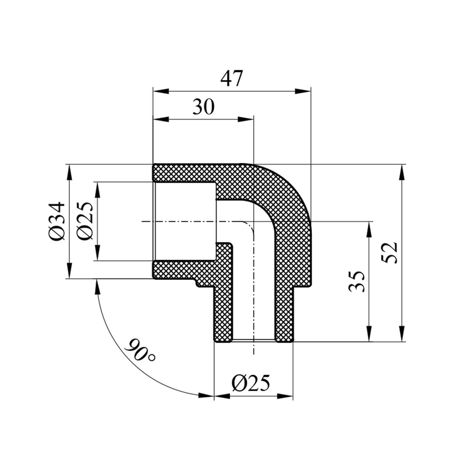 Характеристики Колено 90° PPR GrandiTherm 25 мм ВН код товару CV024048