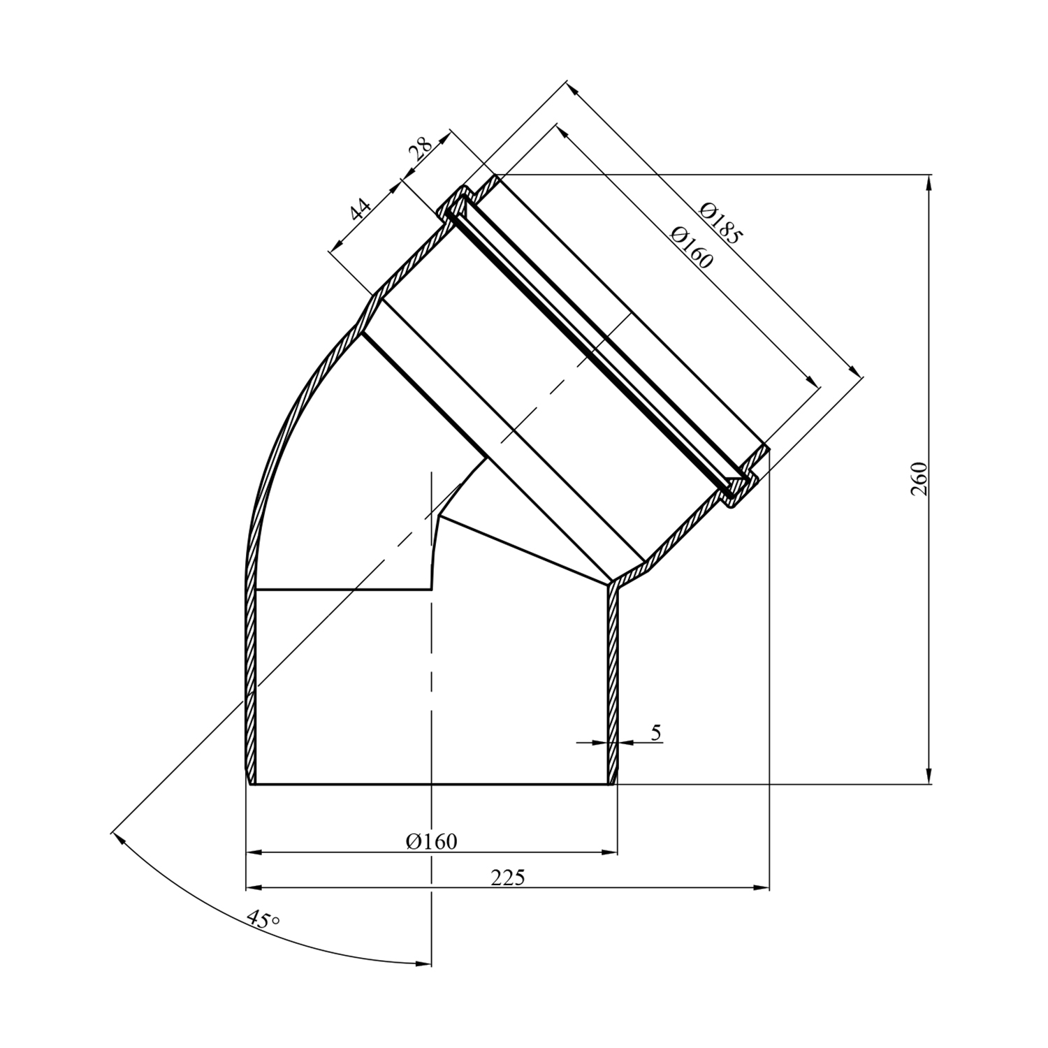 Колено Rozma 160х45° идеально подходит для применения в наружных канализационных системах, обеспечивая стабильную работу и долговечность.