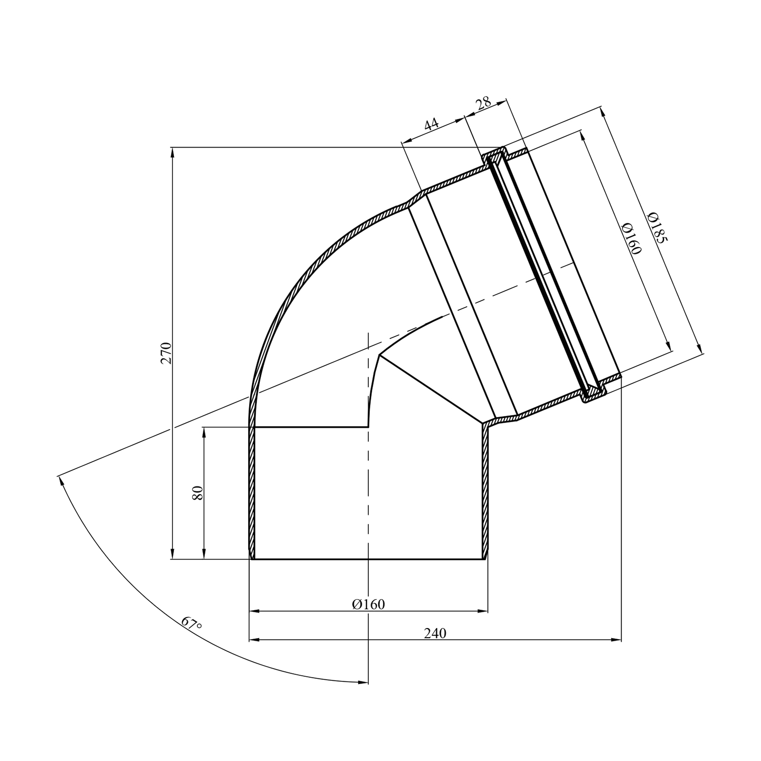 Колено Rozma 160х67° идеально подходит для применения в наружных канализационных системах, обеспечивая стабильную работу и долговечность.