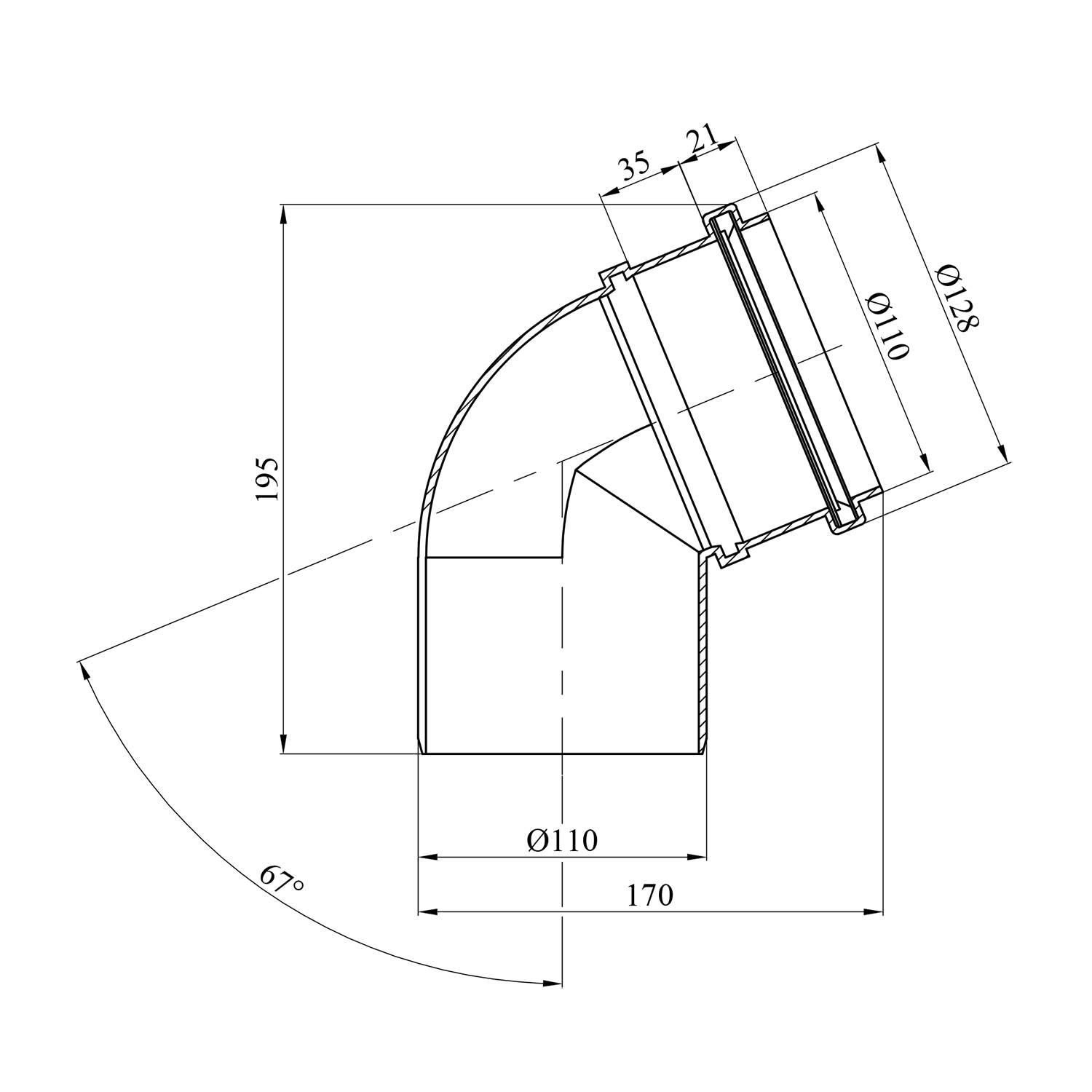 Колено для внутренней канализации Baux 110х67° – идеальное решение для изменения направления канализационных труб диаметром 110 мм под углом 67 градусов. Изготовлено из высококачественного материала, гарантирующего прочность и долговечность. Легко монтируется и надежно выдерживает нагрузку. Обеспечивает эффективный отвод сточных вод и предотвращает пробки в системе.