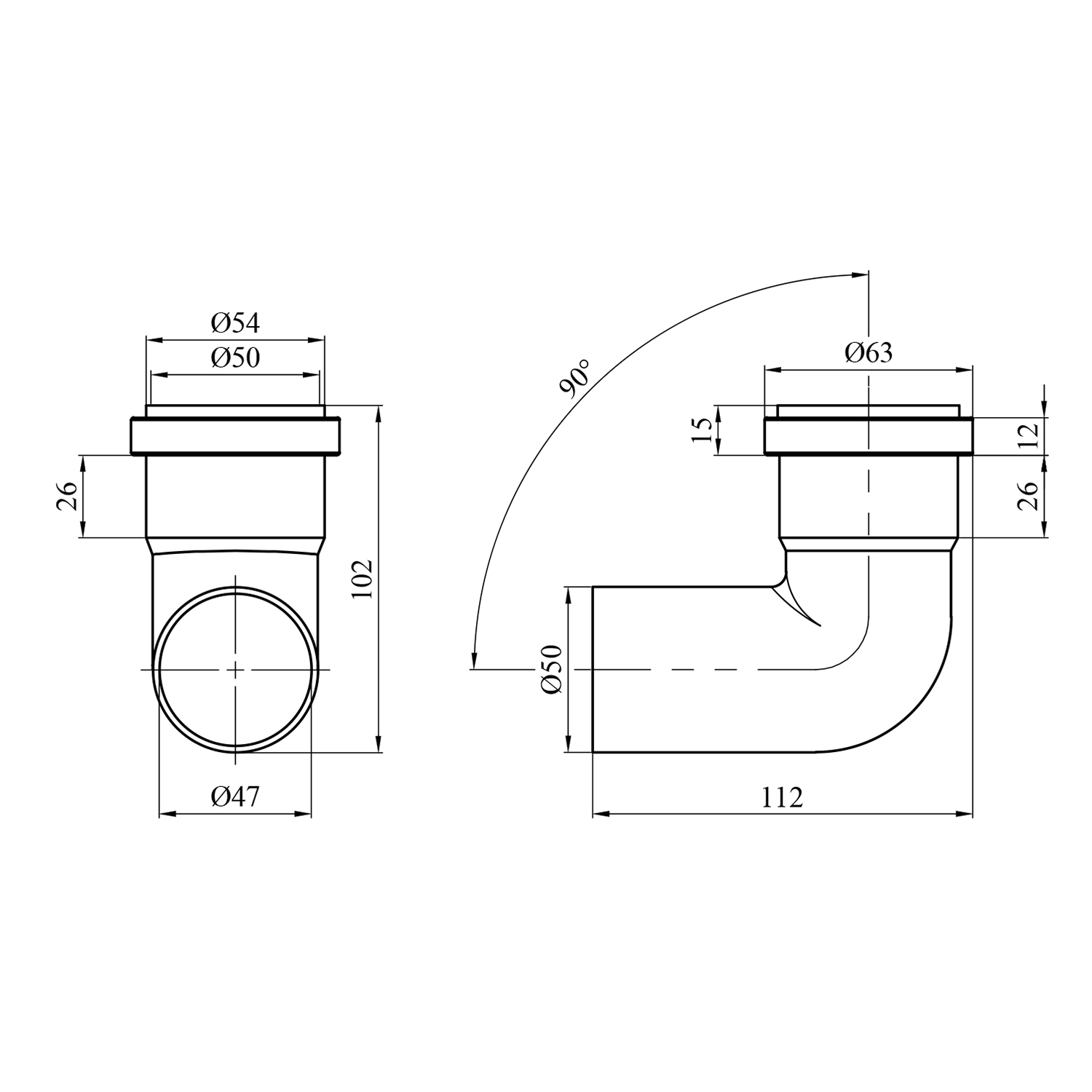 Характеристики Колено Baux 50х90° для внутренней канализации код товару CV029699