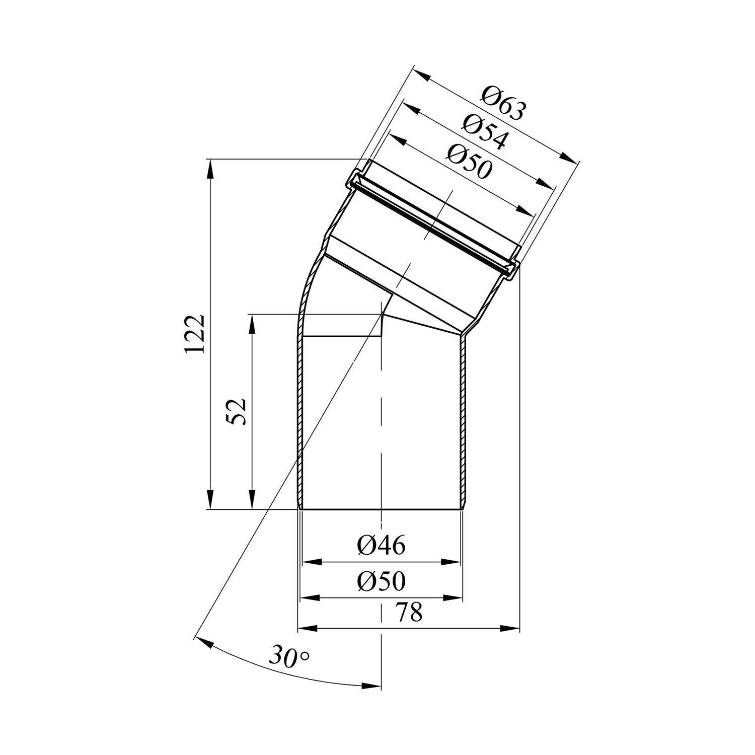 Описание Колено для внутренней канализации Rozma 50 мм, угол 30° код товару CV016941