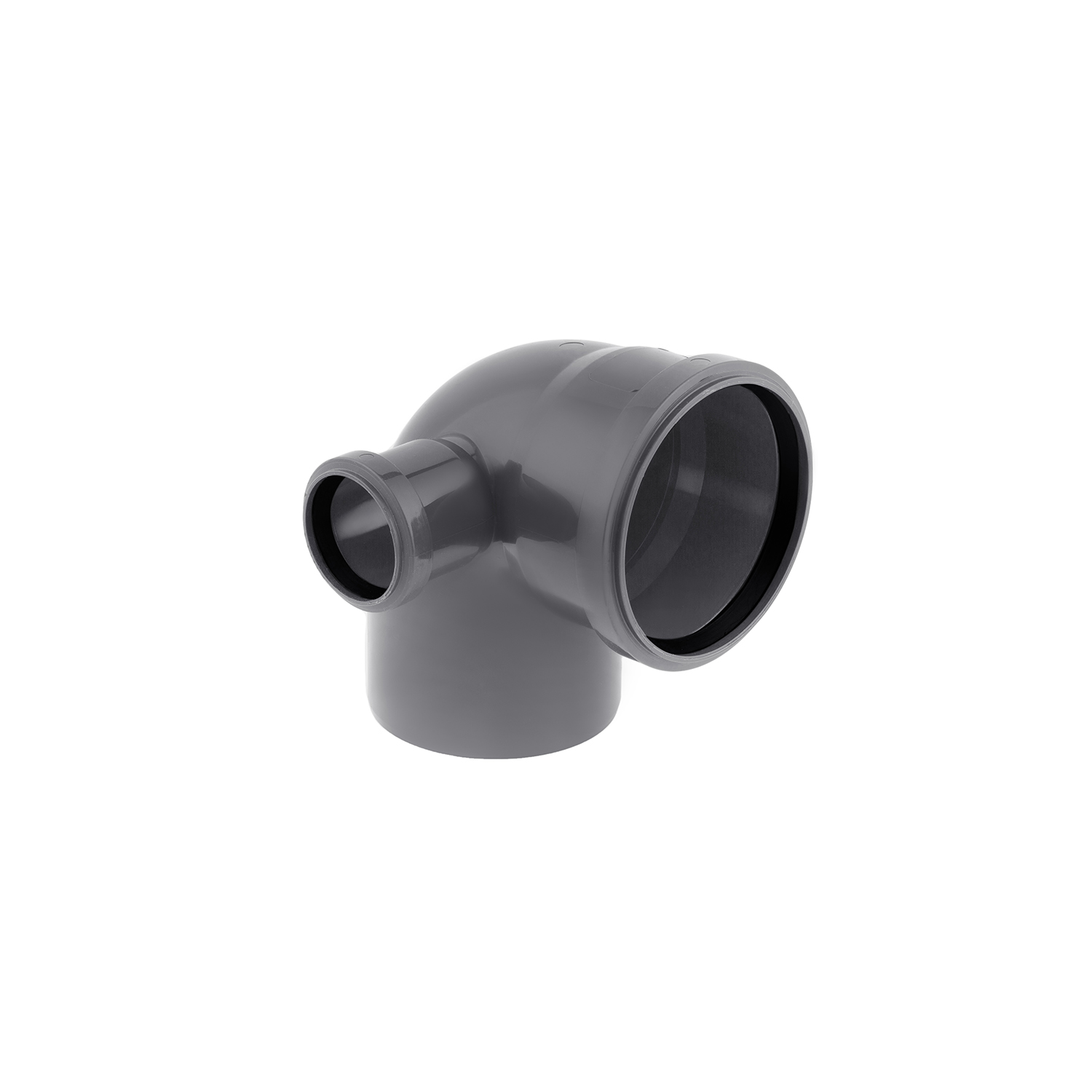 Характеристики Колено двухплоскостное для внутренней канализации Baux 110х90° с отводом 50 мм, вправо код товару CV030943