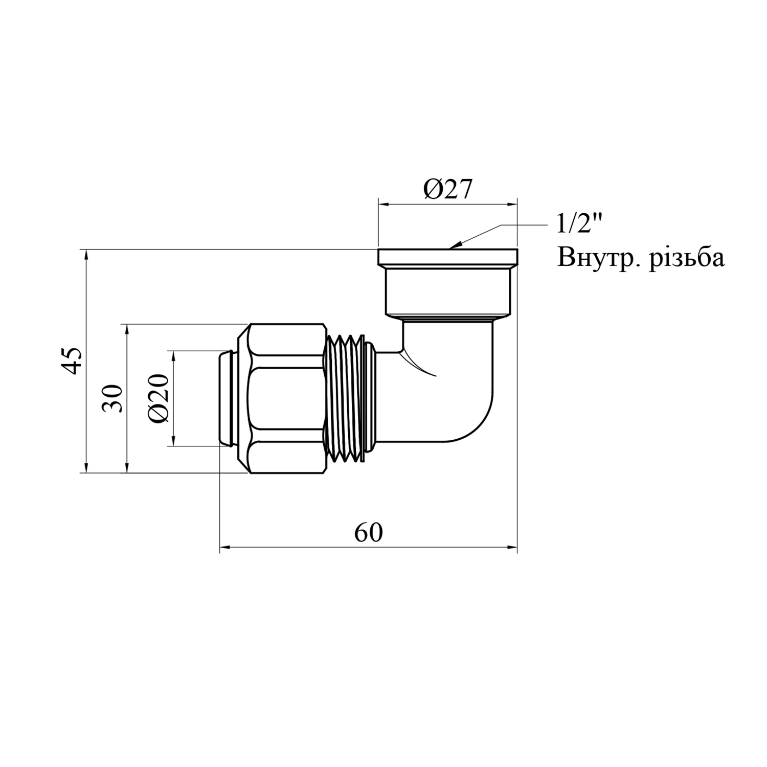 Описание Колено металлопластиковое Karro 20х1/2 никелированное код товару CV017581