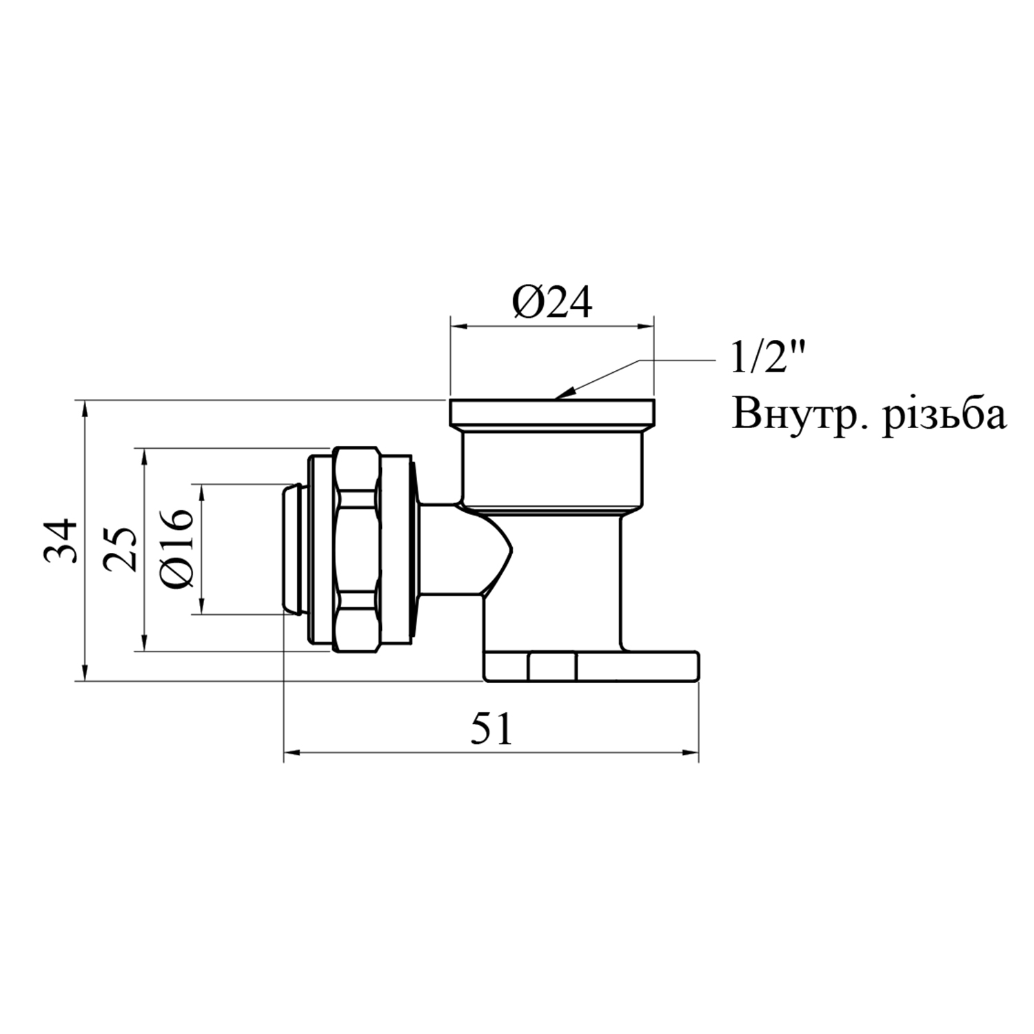 Описание Колено металлопластиковое STA 16x1/2 РВ никелированное код товару CV008356