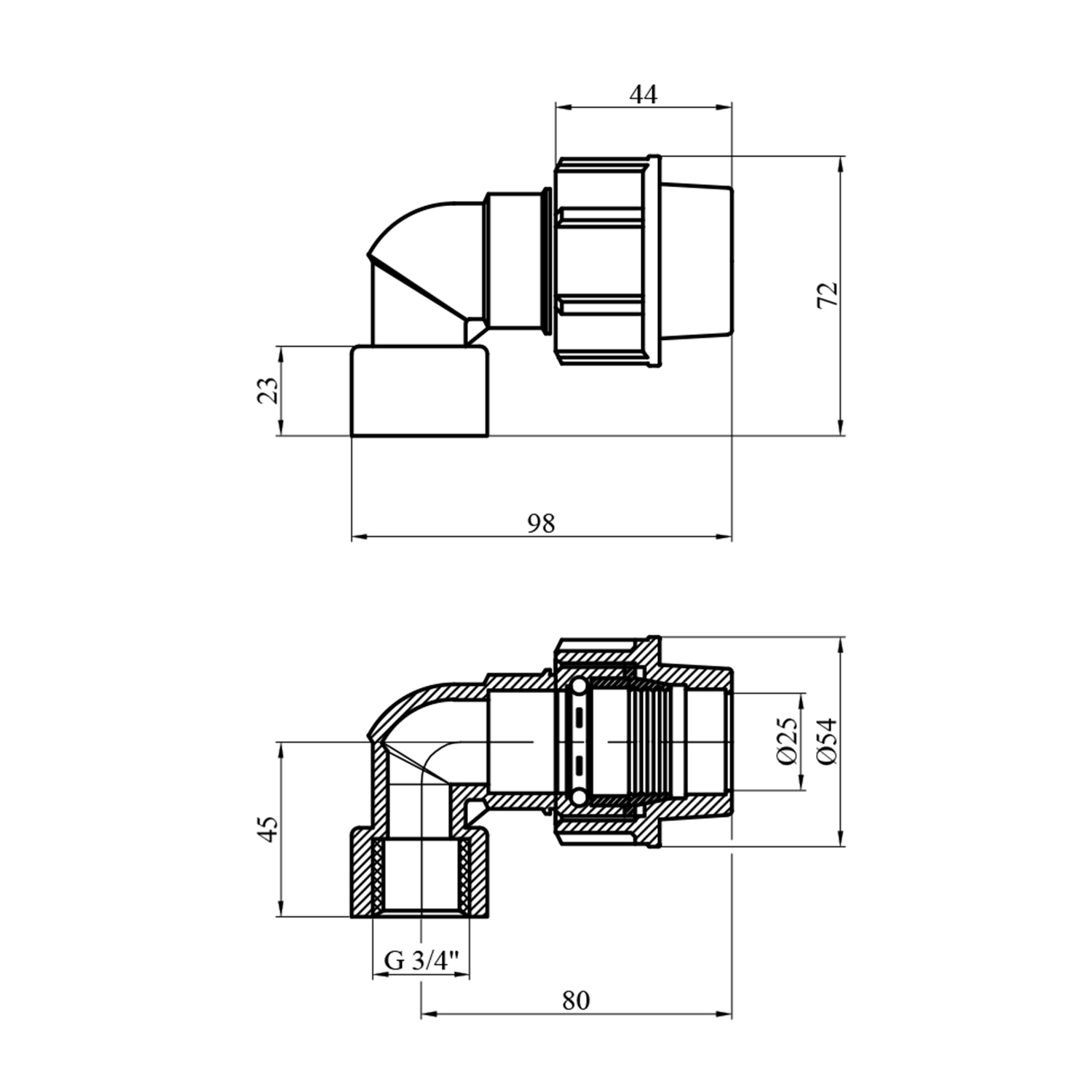 Характеристики Колено ПЭ Rozma 25x3/4 РВ код товару CV023455