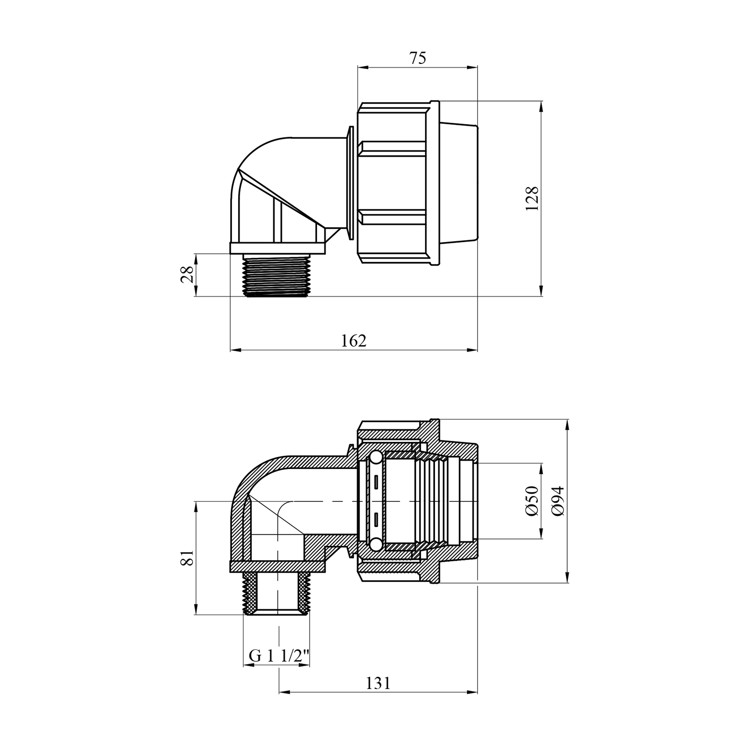 Характеристики Колено ПЭ Rozma 50х1 1/2 РН код товару CV023513