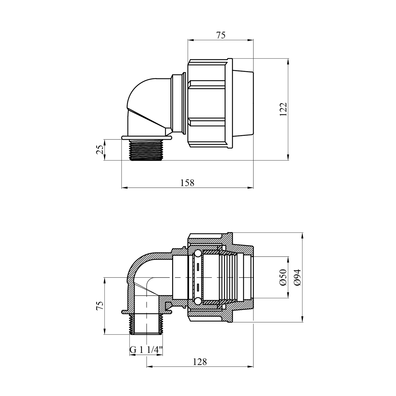 Характеристики Колено ПЭ Rozma 50х1 1/4 РН код товару CV023501