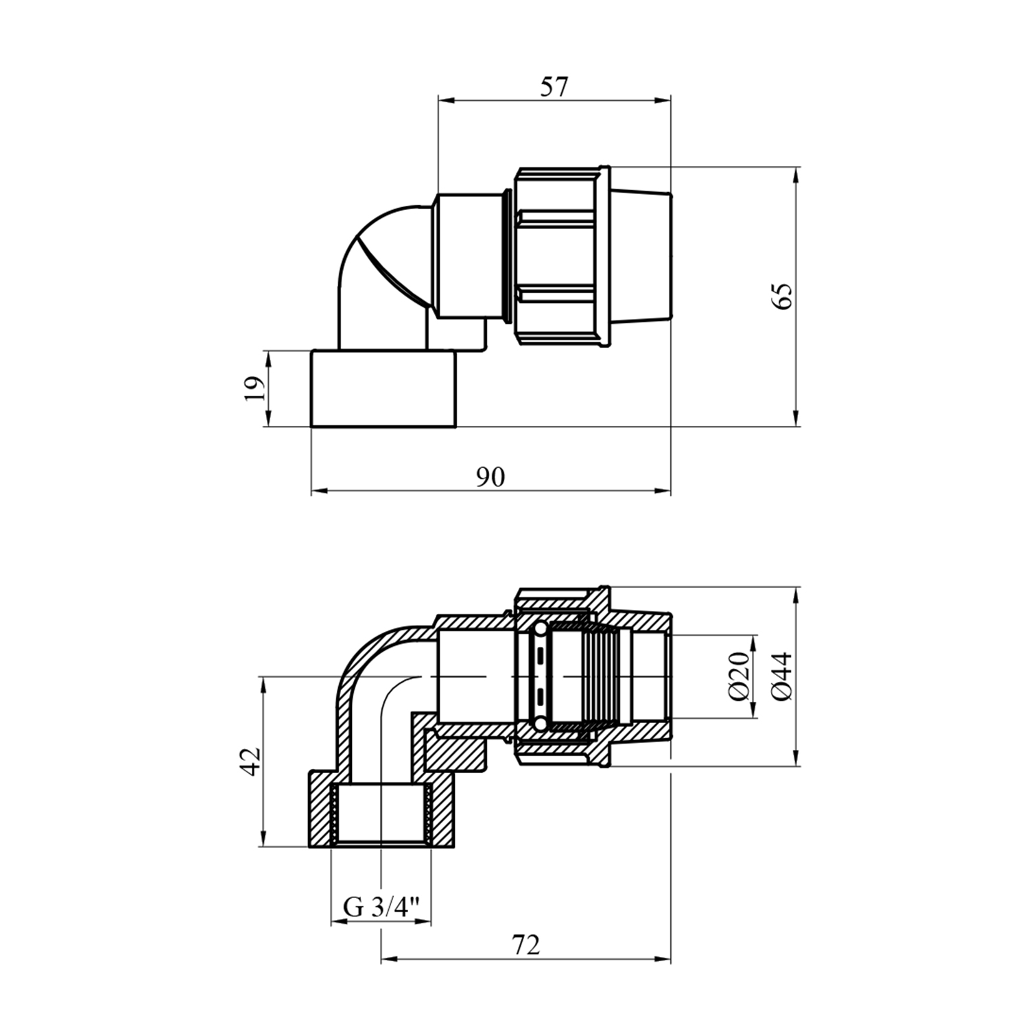 Колено ПЭ SantehPlast 20х3/4" РВ