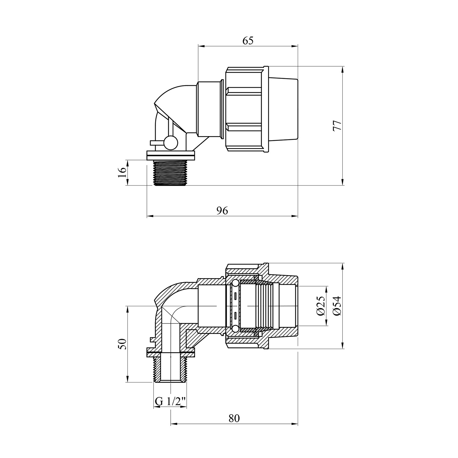 Характеристики Колено ПЭ SantehPlast 25х1/2" РН код товару CV018538