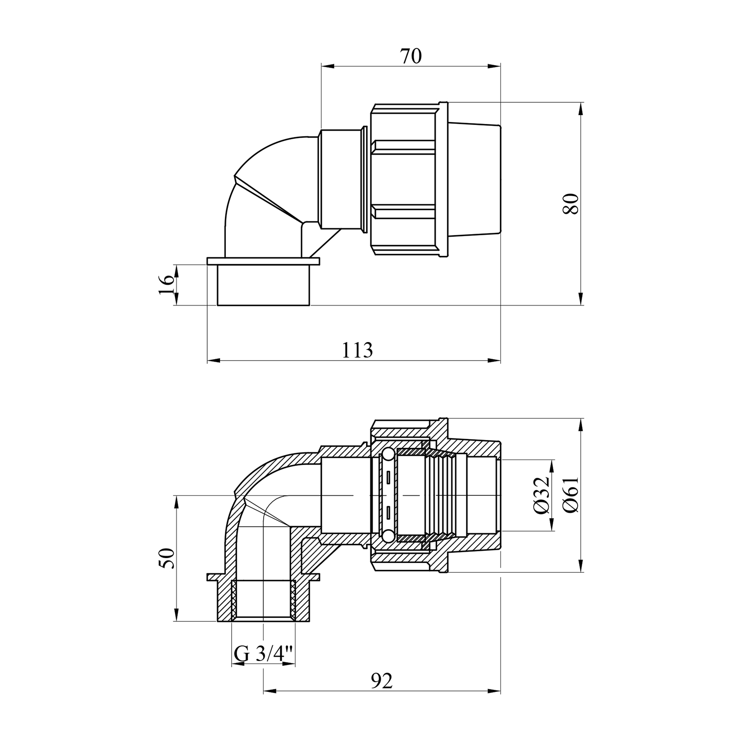 Характеристики Колено ПЭ SantehPlast 32х3/4" РВ код товару CV022473