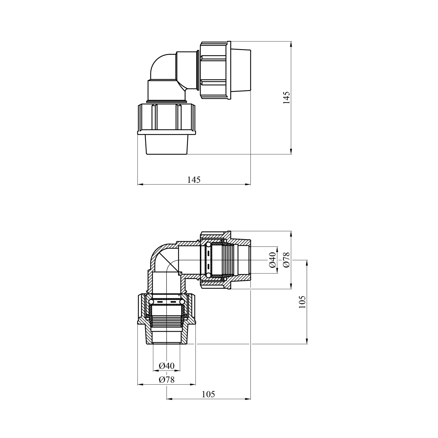 Характеристики Колено ПЭ SantehPlast 40х40 мм код товару CV019212
