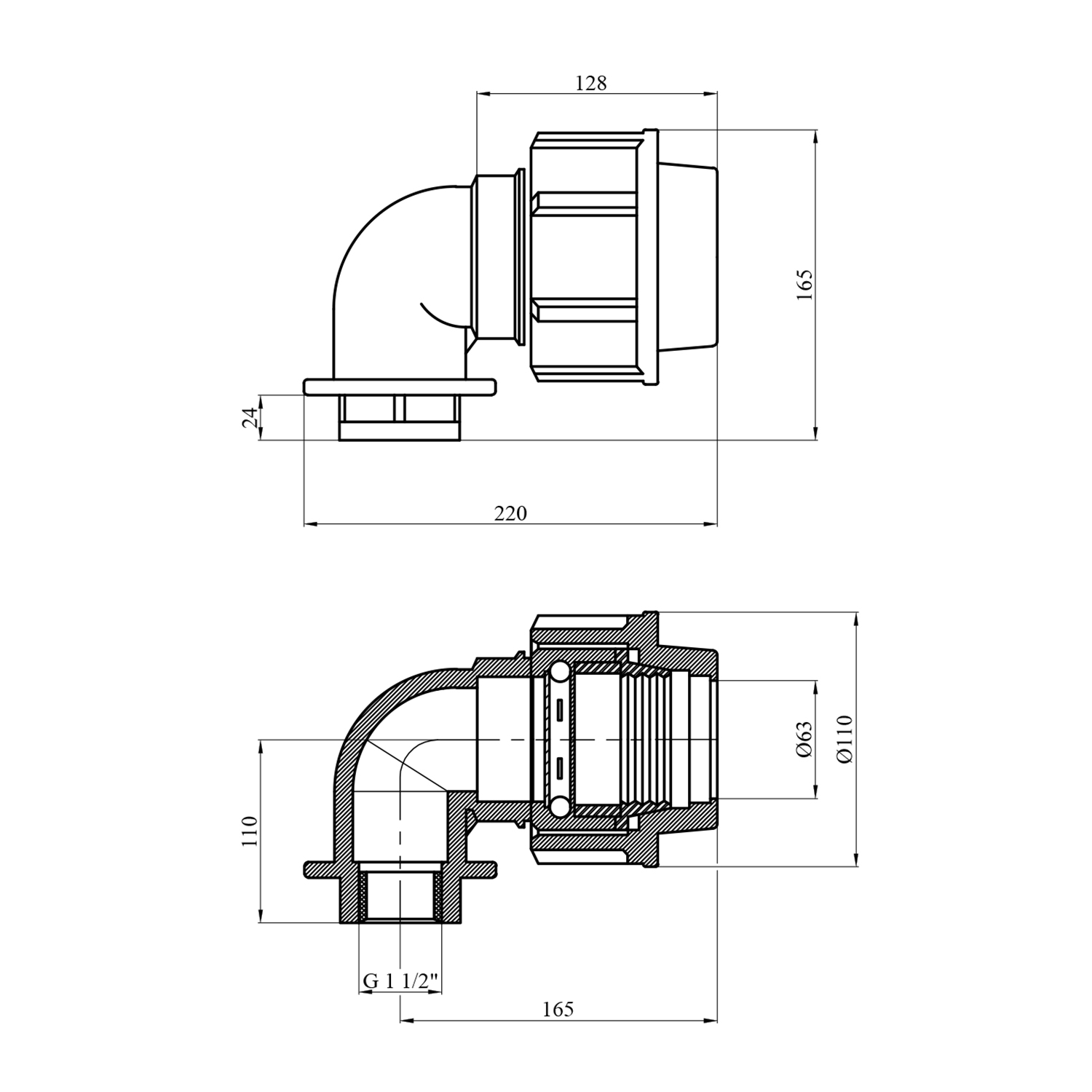 Характеристики Колено ПЭ SantehPlast 63х1 1/2" РВ код товару CV020736