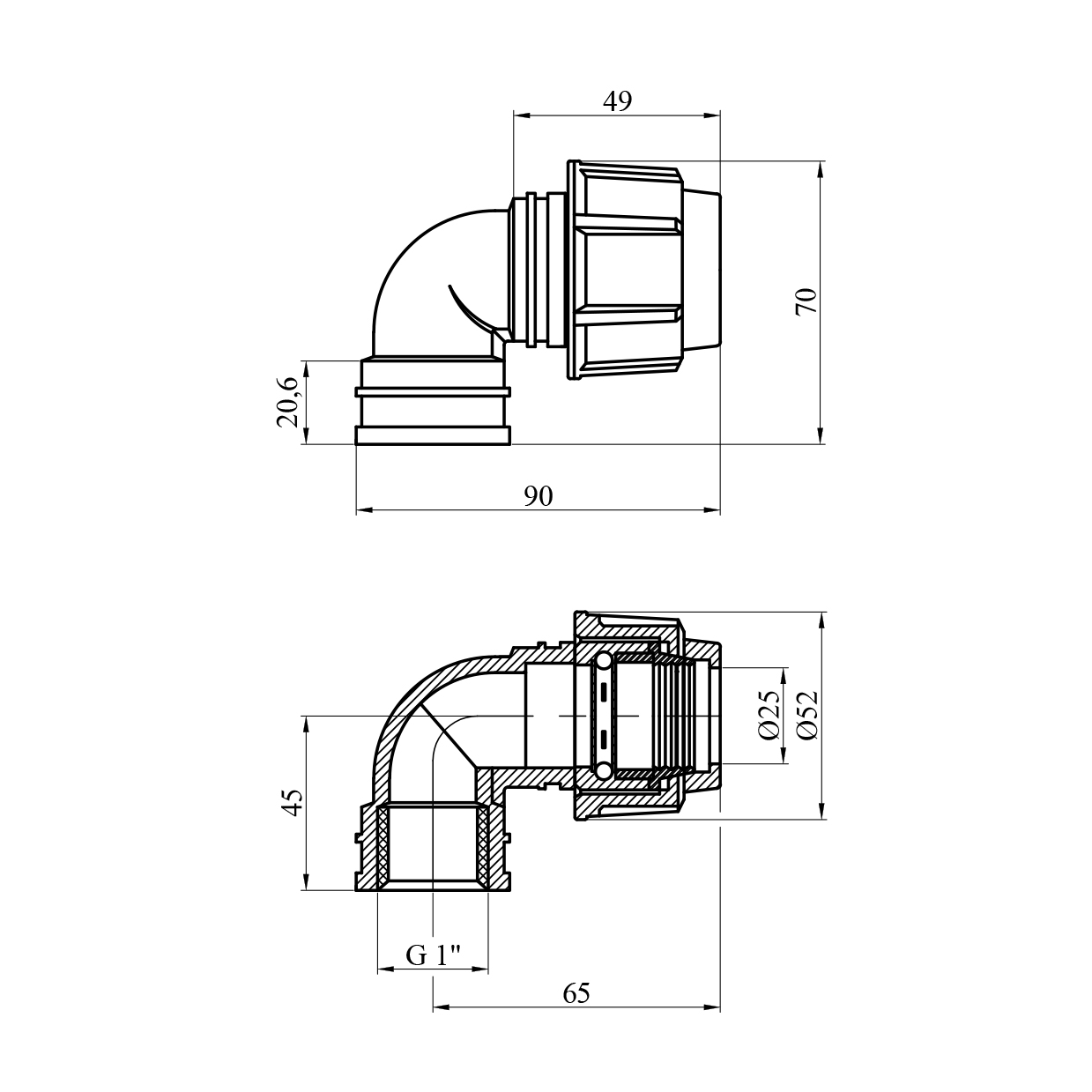 Характеристики Колено ПЭ SPT 25x1" РВ код товару CV024701