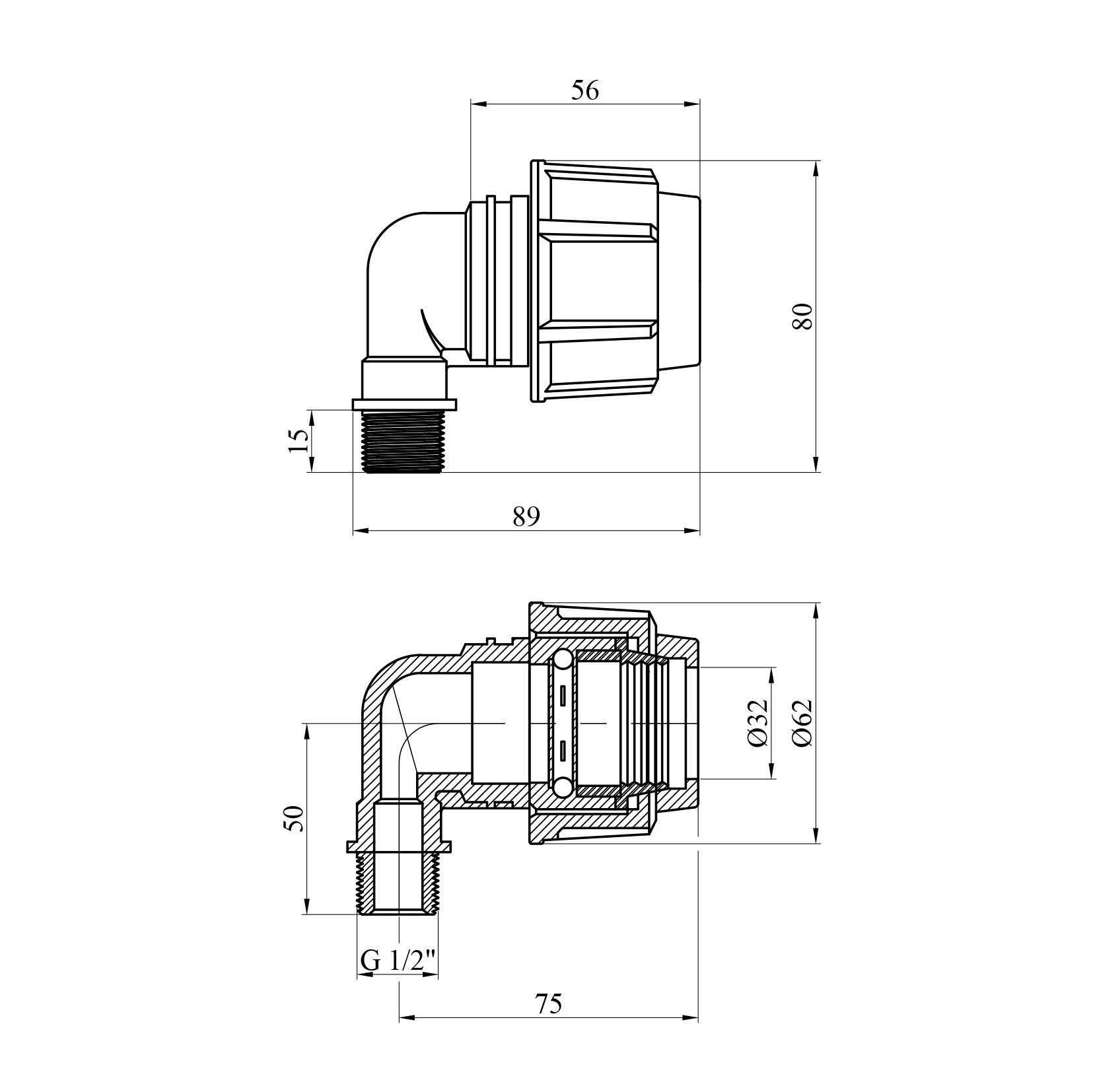 Характеристики Колено ПЭ SPT 32х1/2" РН код товару CV024695