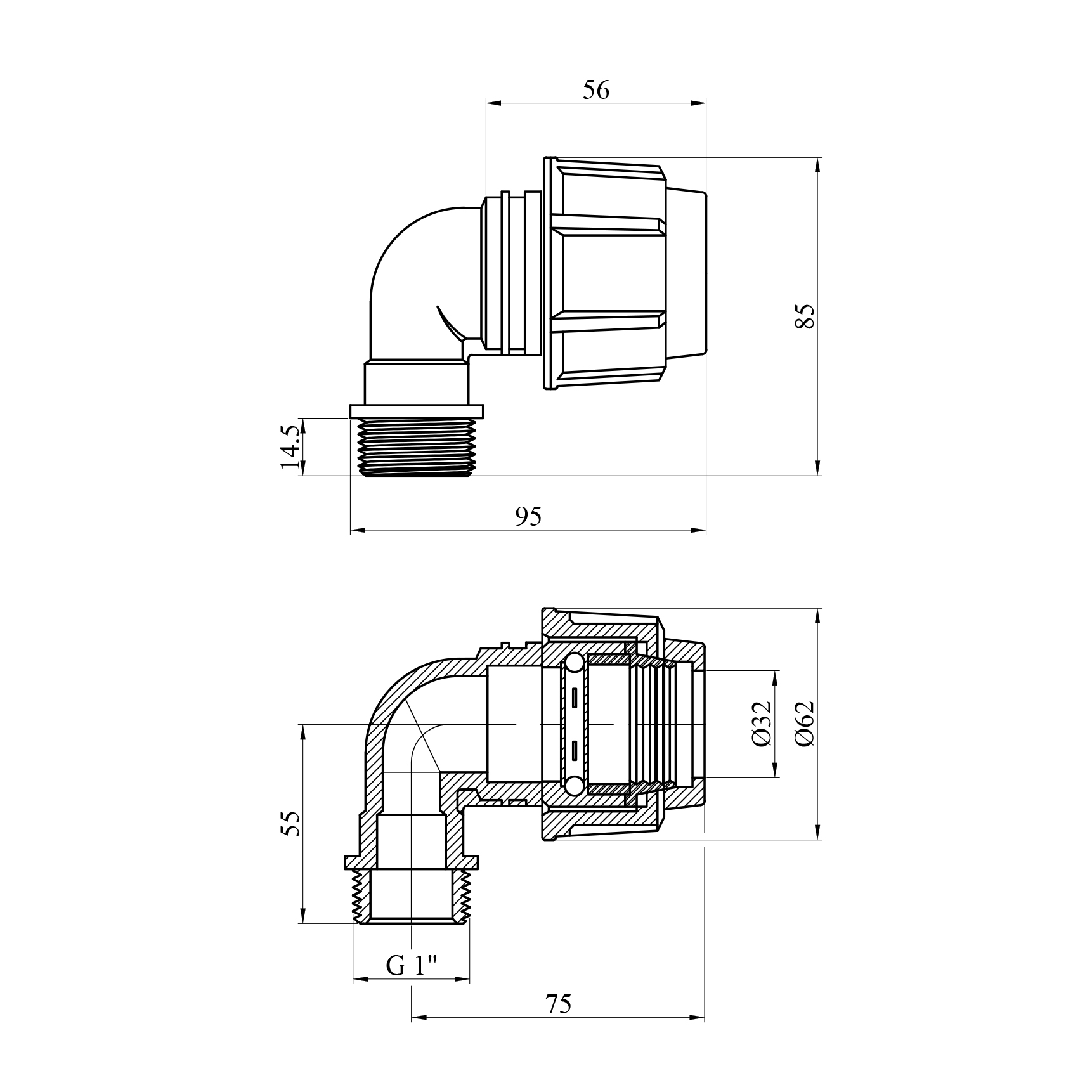 Характеристики Колено ПЭ SPT 32х1" РН код товару CV024697
