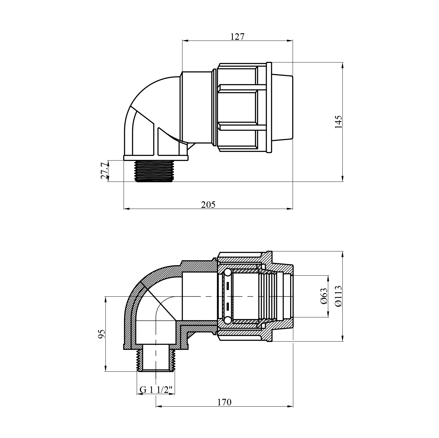 Характеристики Колено ПЭ STR 63х1 1/2 РН код товару CV030931