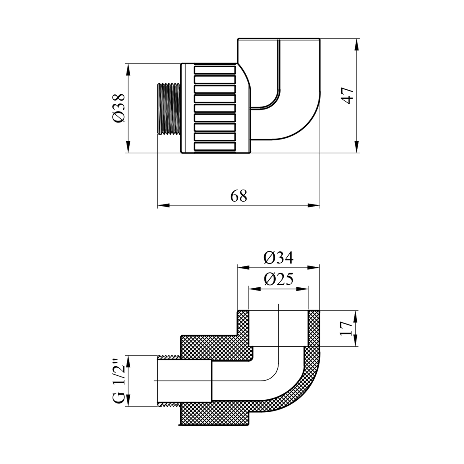 Описание Колено PPR GrandiTherm 25х1/2 РН код товару CV016366