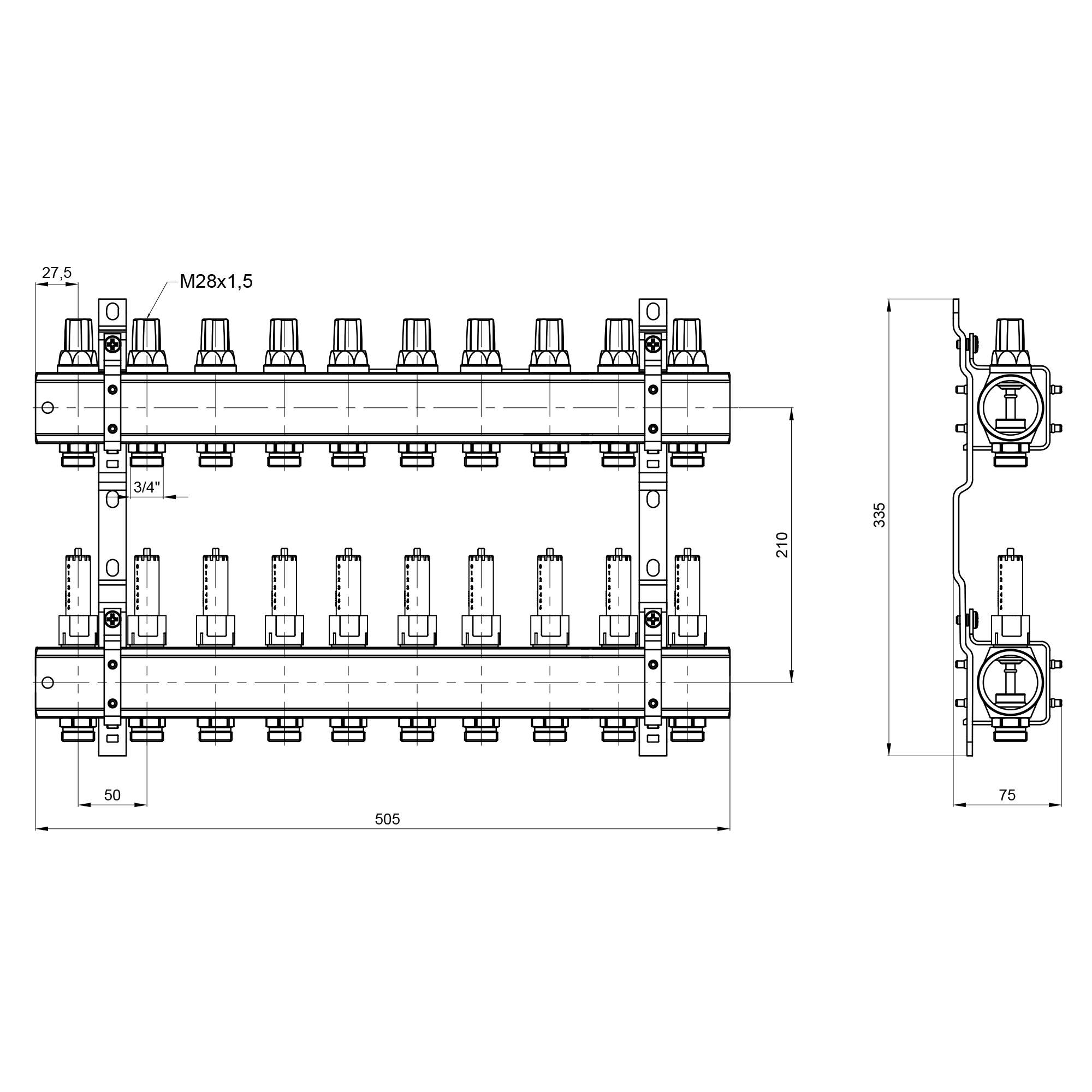 Характеристики Коллектор Icma 1 10 выходов с расходомерами K013 код товару SD00005248