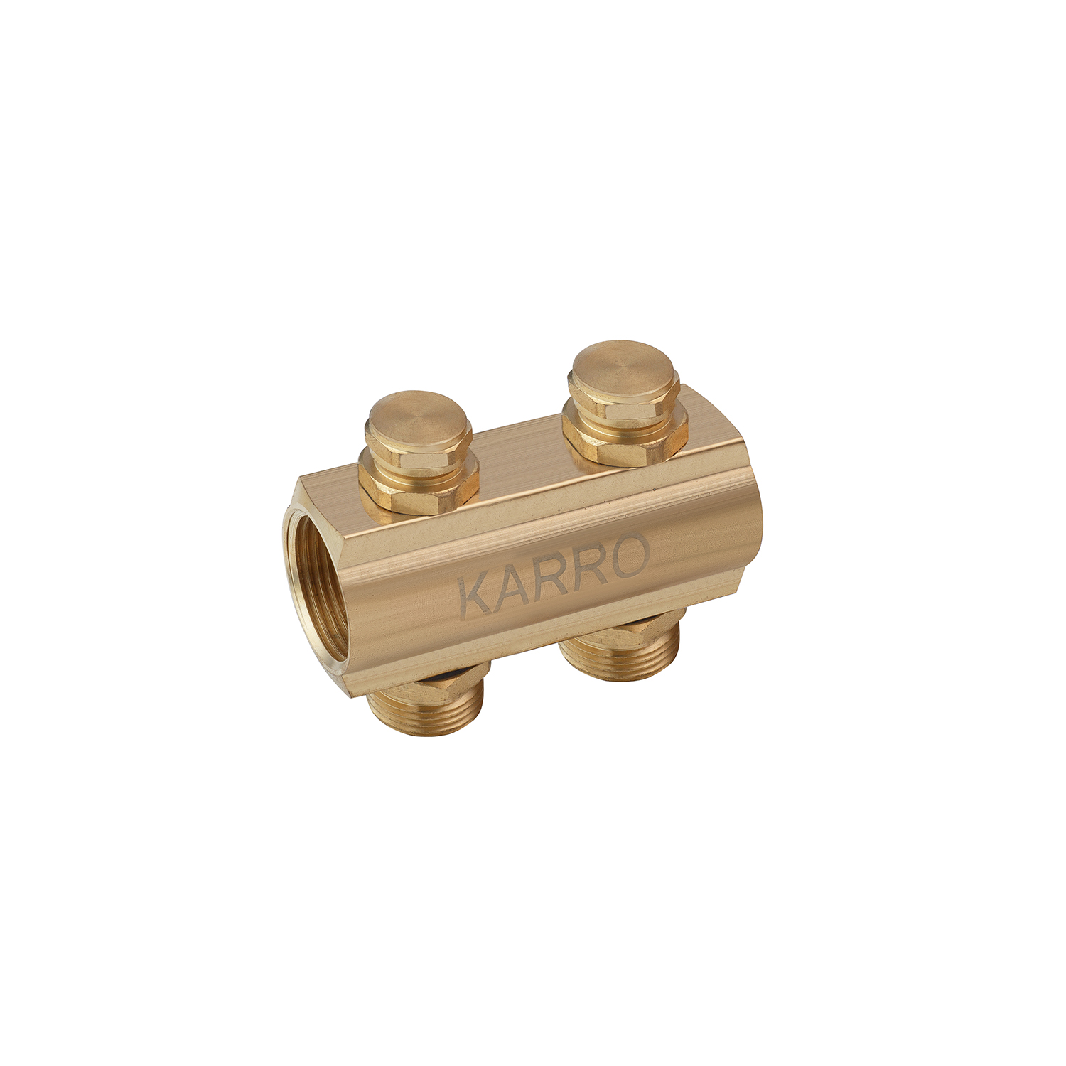Характеристики Регулирующий коллектор Karro на 2 выхода 1" с вентилем, латунный код товару CV018719