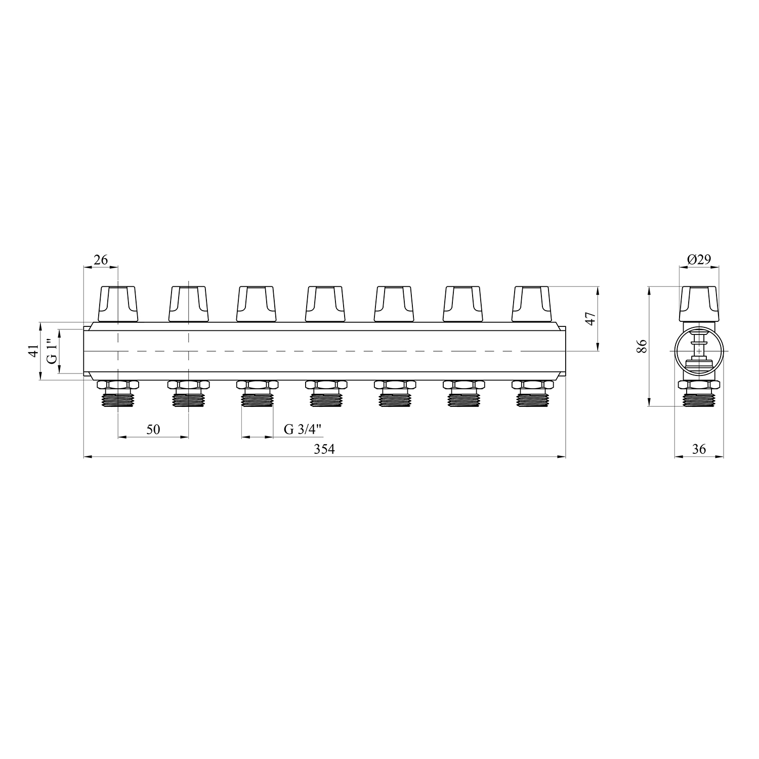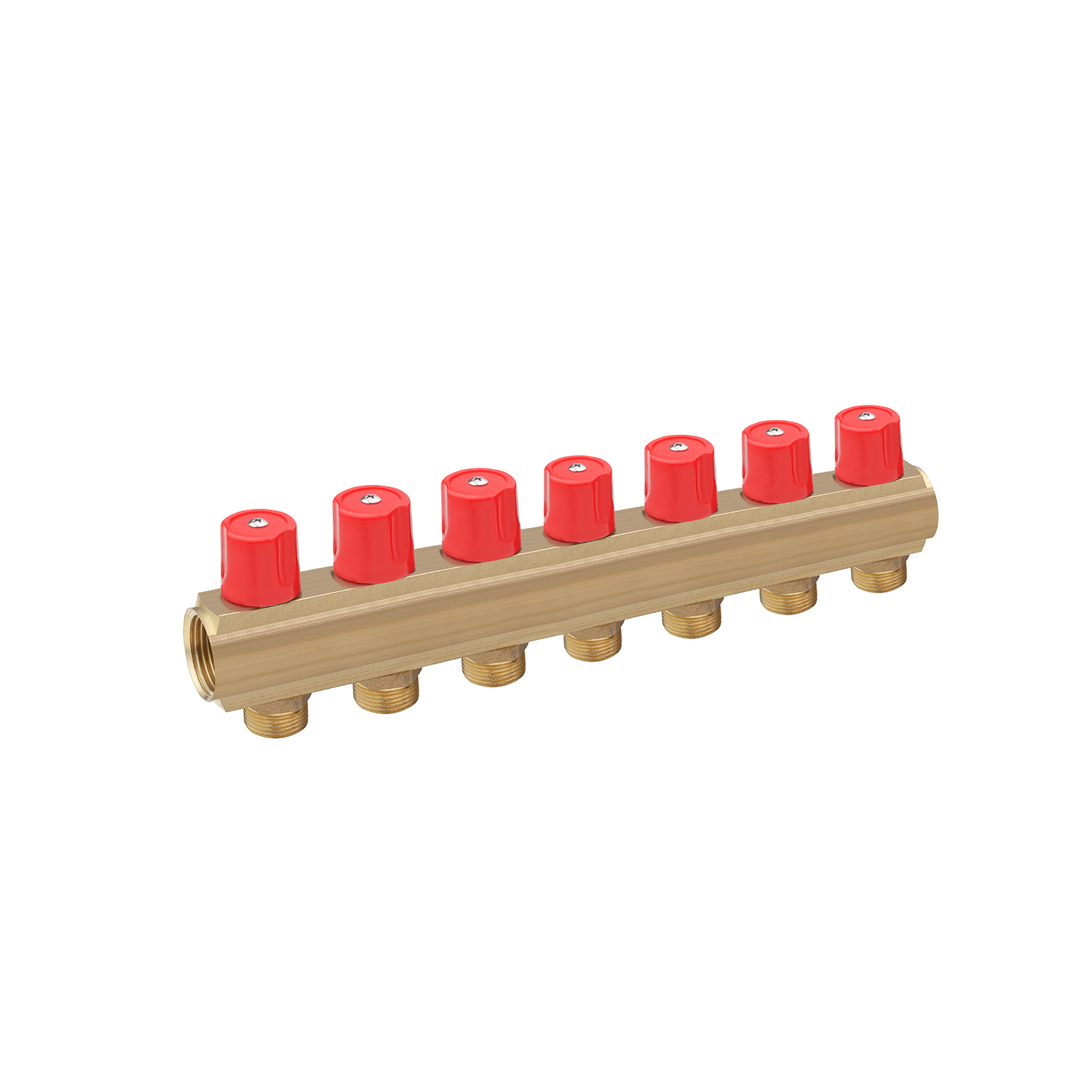 Характеристики Регулирующий коллектор Karro на 7 выходов 1х3/4, латунный код товару CV013736