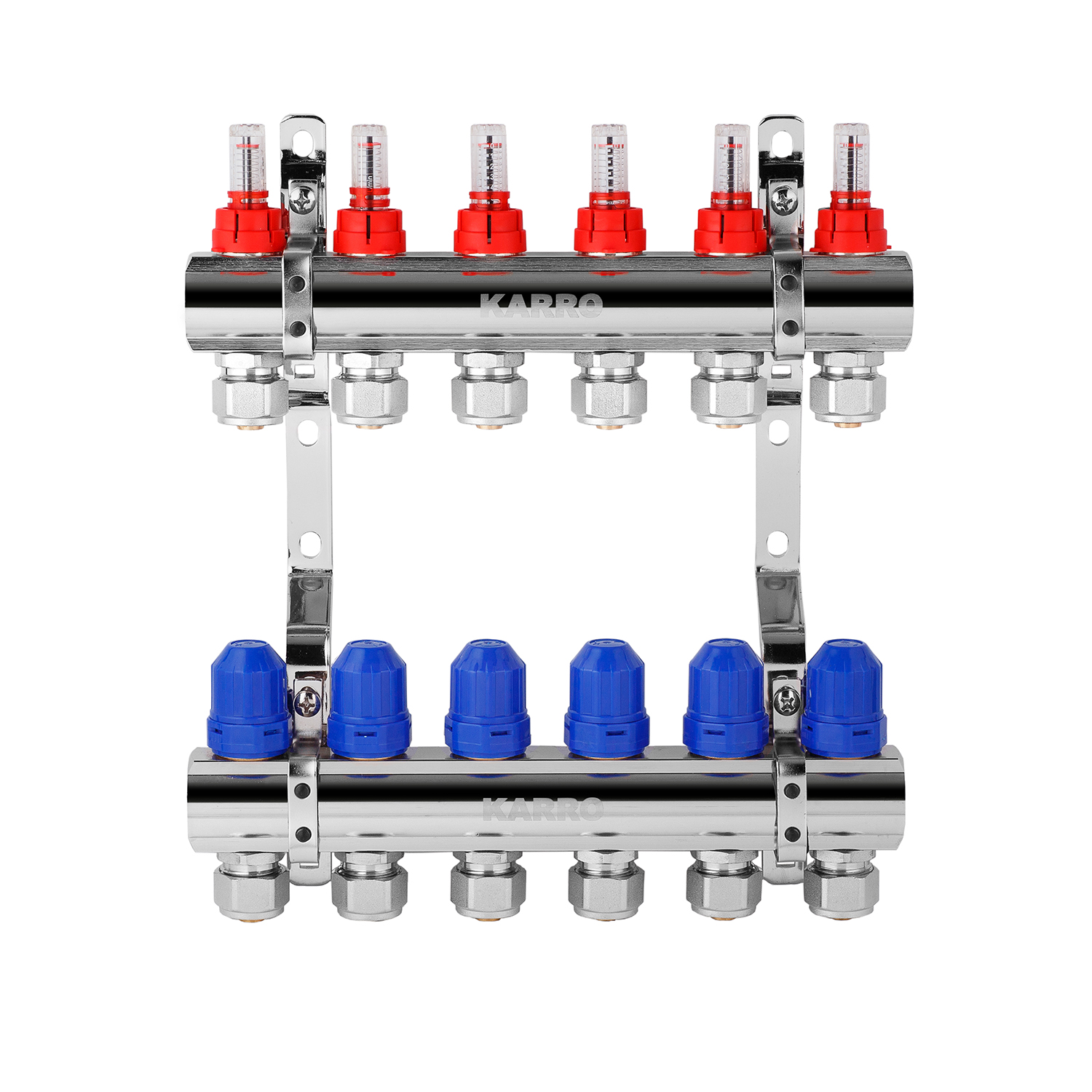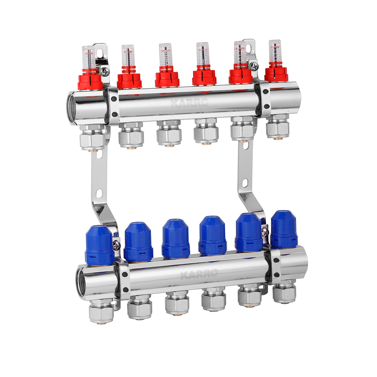 Характеристики Коллектор Karro на 6 выходов с евроконусами, хромированный KR-20160 код товару CV018064