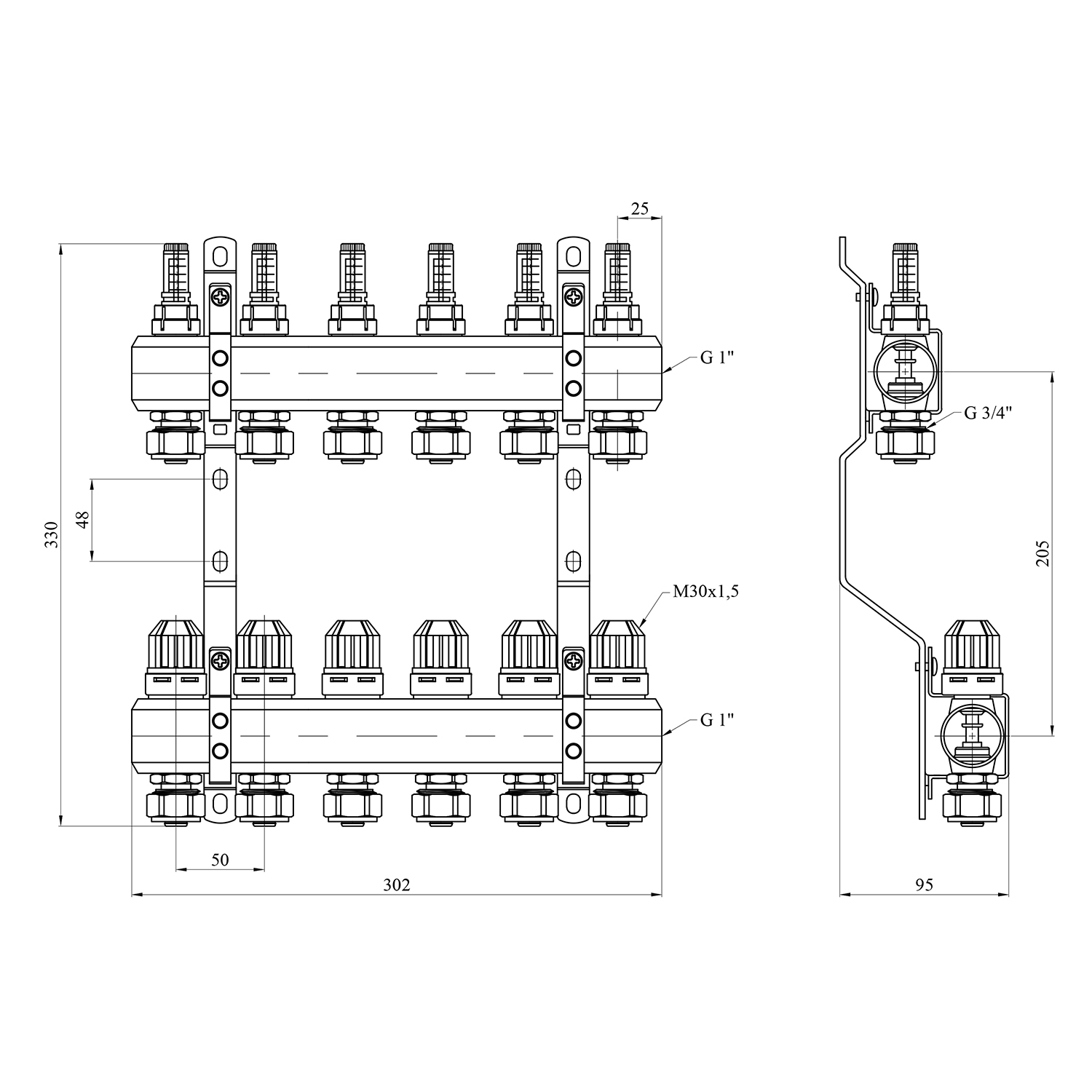Коллектор с термовентилями, коллектор с расходомерами, крепеж, евроконусы