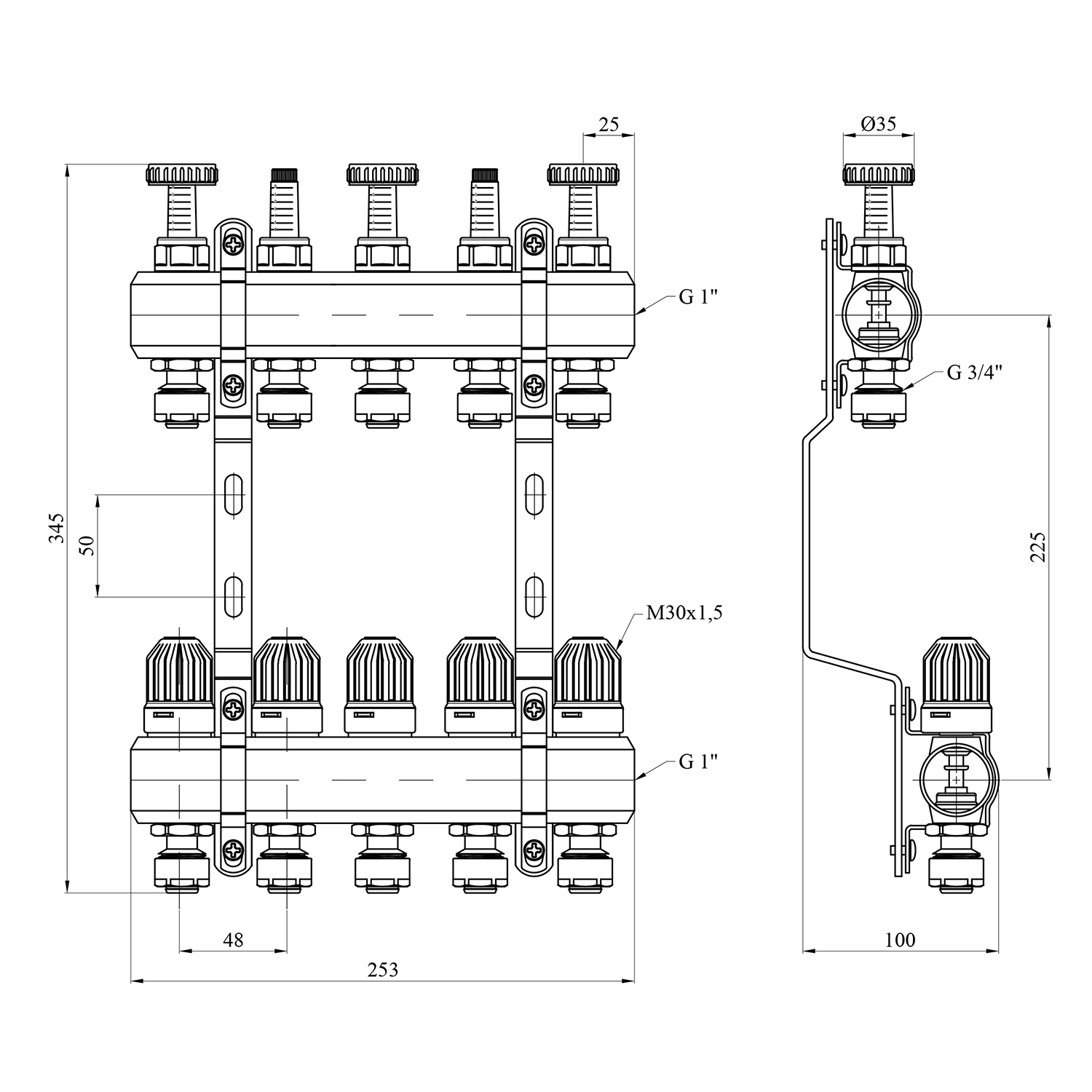 Коллектор с термовентилями, коллектор с расходомерами, крепеж, евроконусы