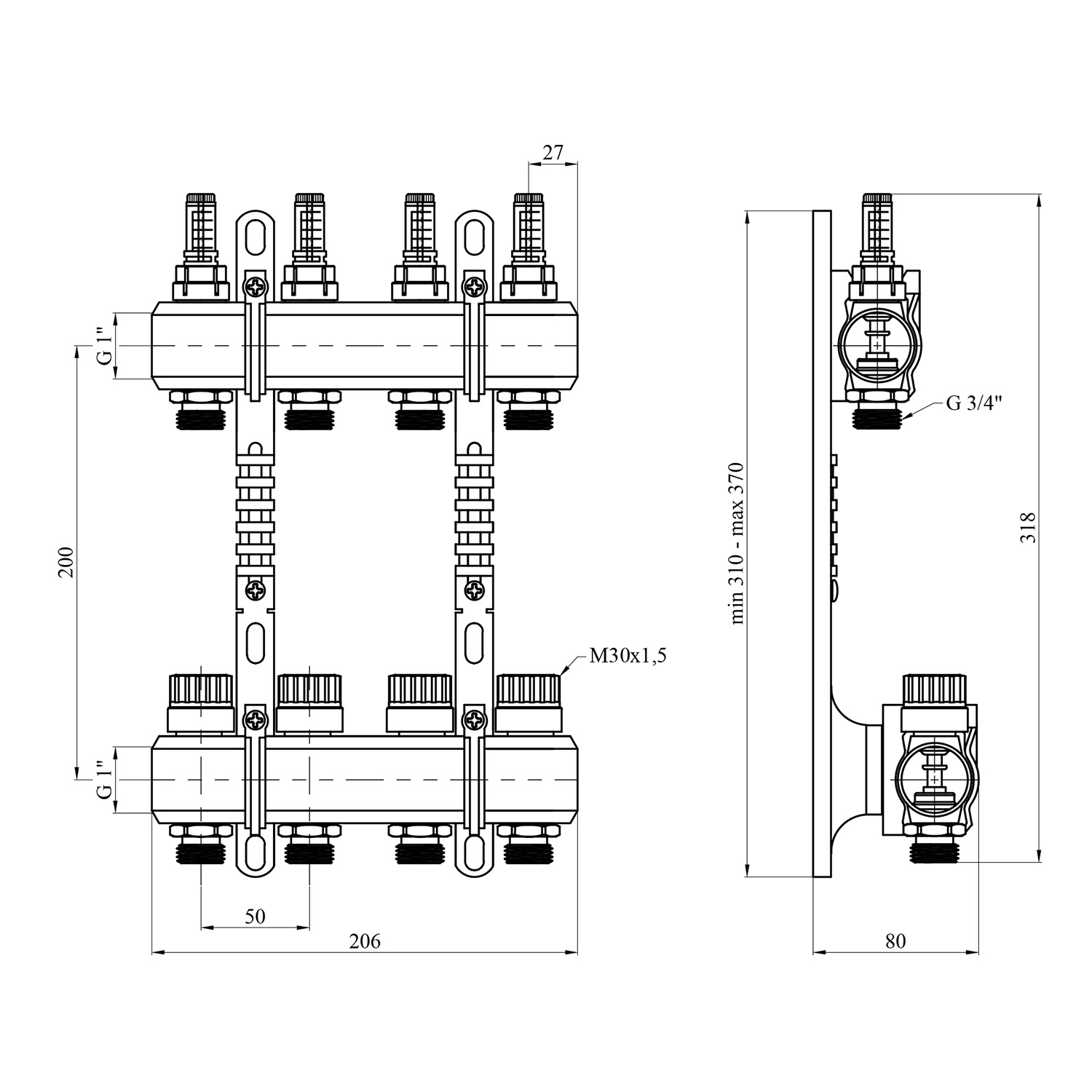 Характеристики Коллектор STA 4 выхода 1х3/4 никелированный без евроконусов код товару CV016403